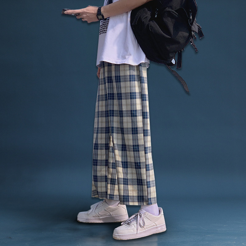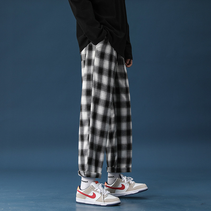 Мужские спортивные шахматы, трендовые штаны, свободный прямой крой, в корейском стиле