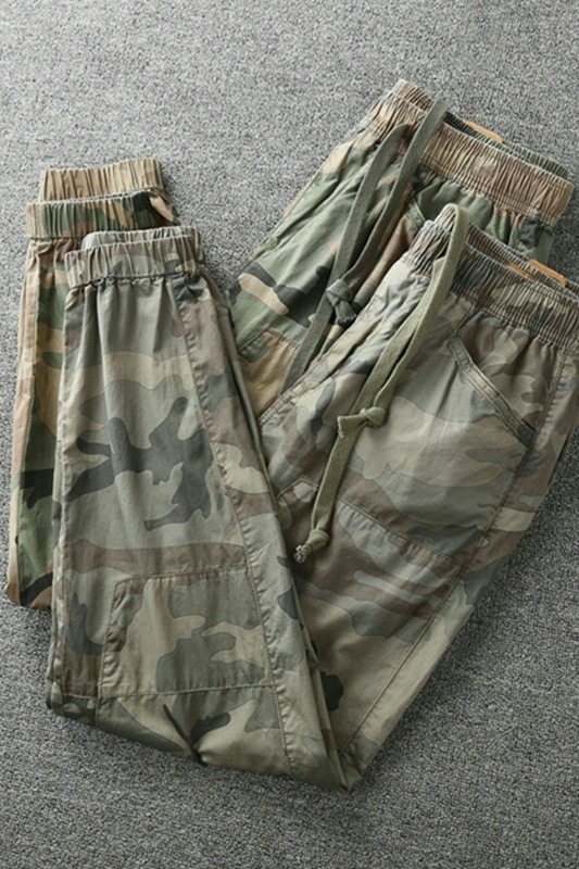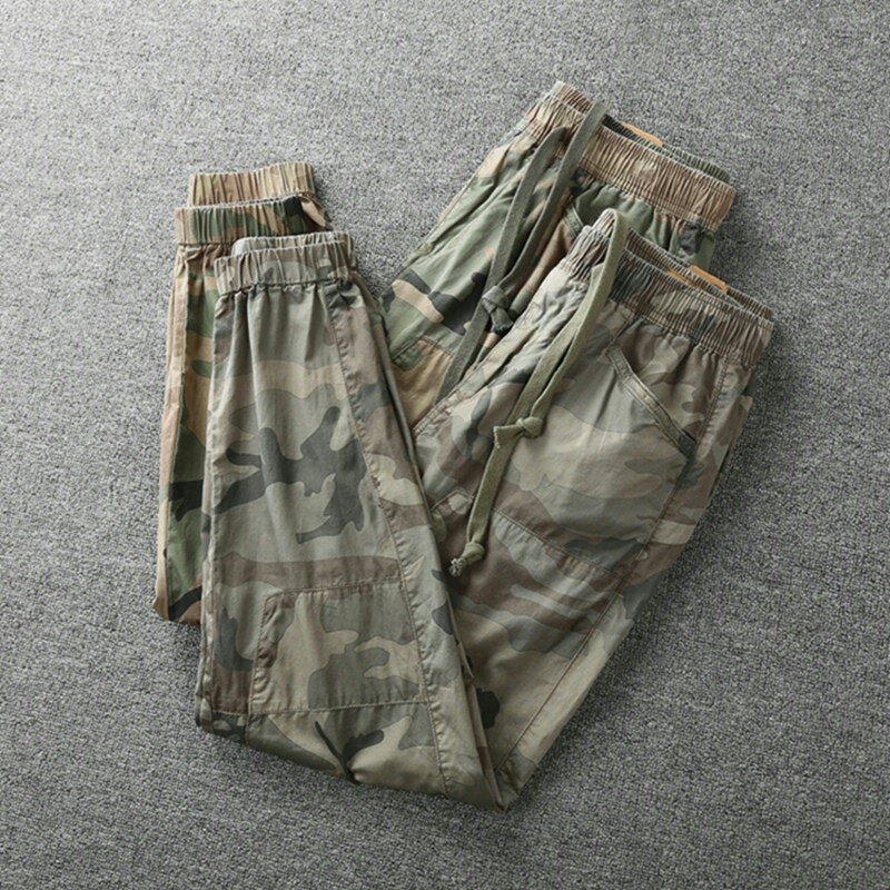 Камуфляжные тонкие летние штаны, осенние хлопковые эластичные повседневные брюки, эластичная талия, оверсайз