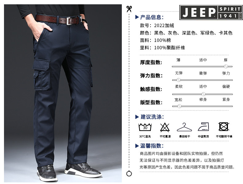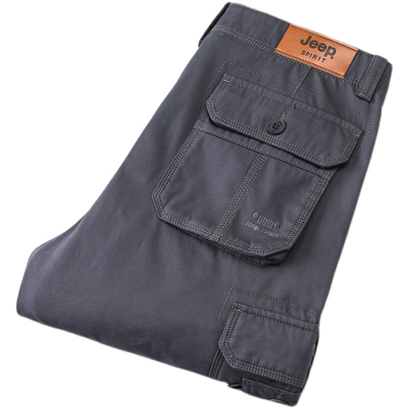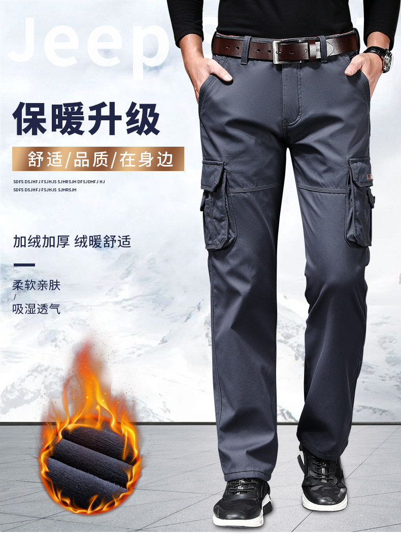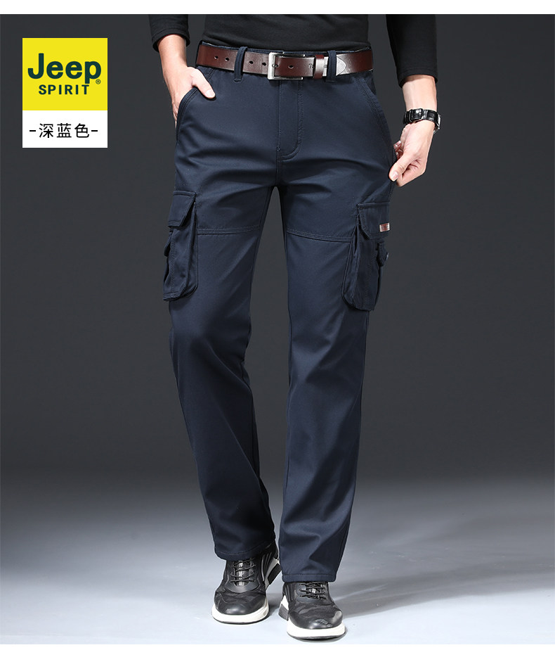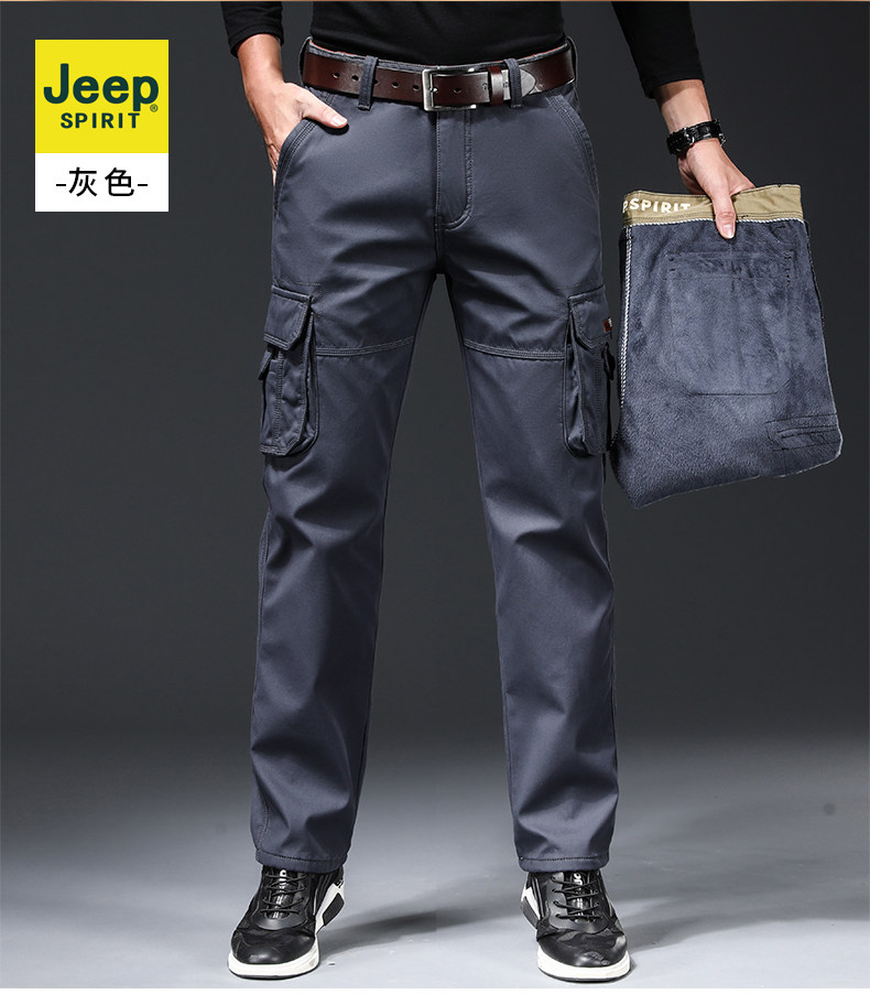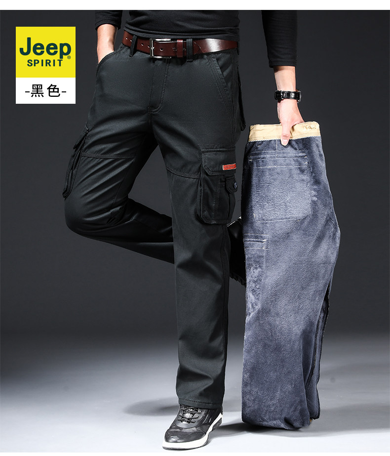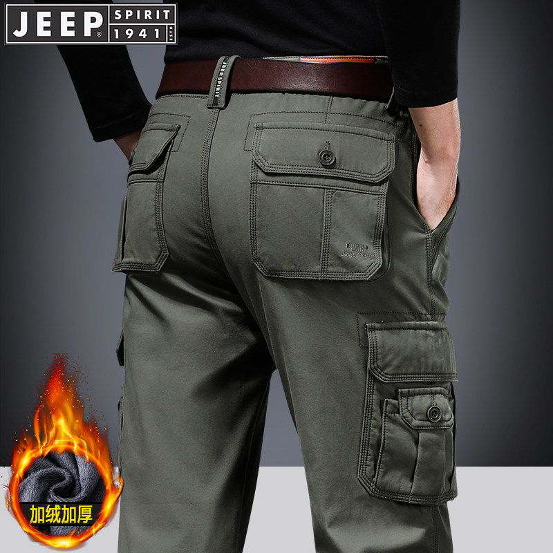 Jeep, джип, демисезонные утепленные хлопковые износостойкие штаны, свободный прямой крой, большой размер