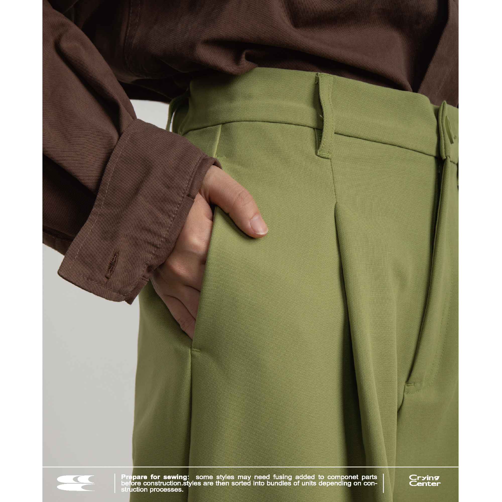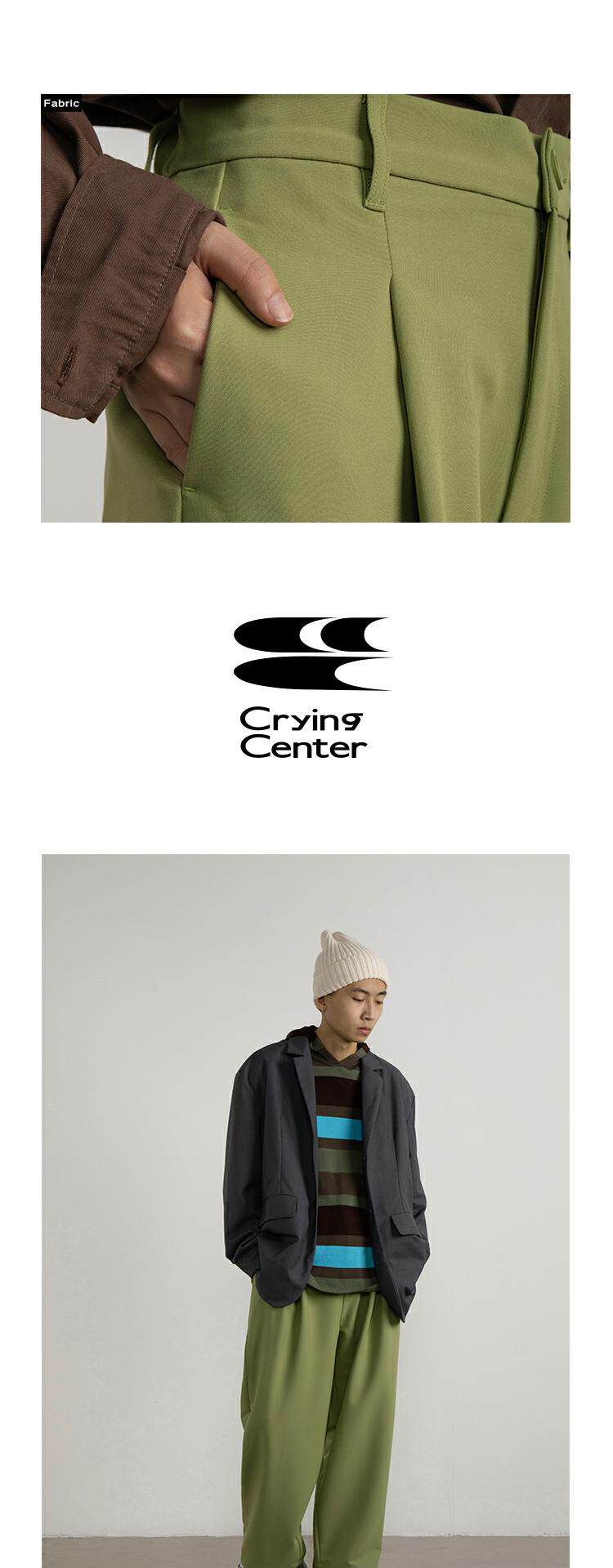 CryingCenter Slim и широко плиссированные прямые повседневные брюки авокадо зеленые/черные крики центр
