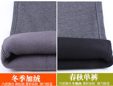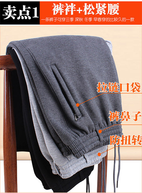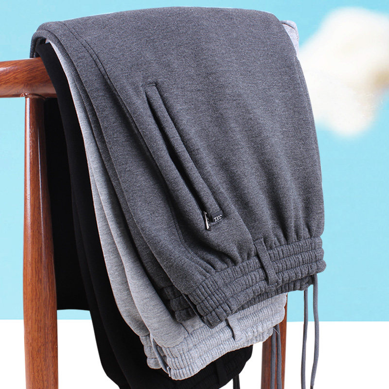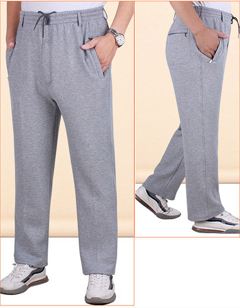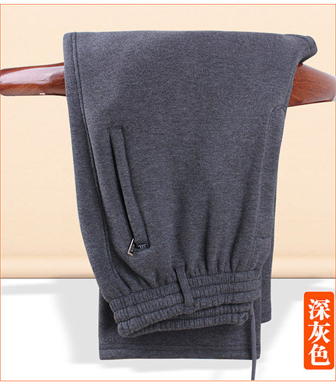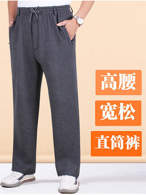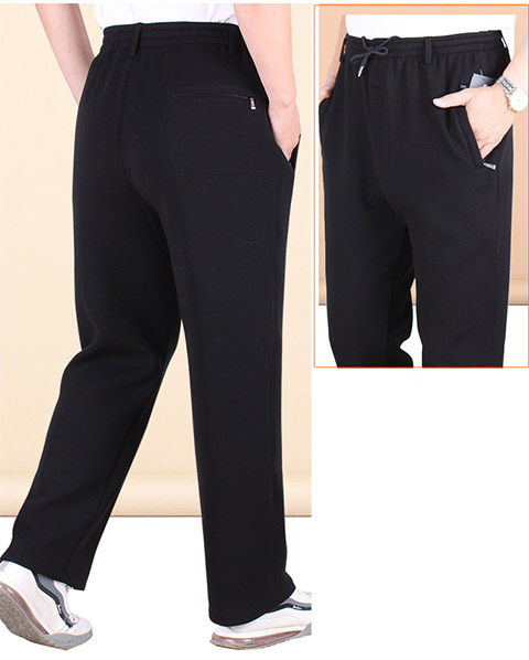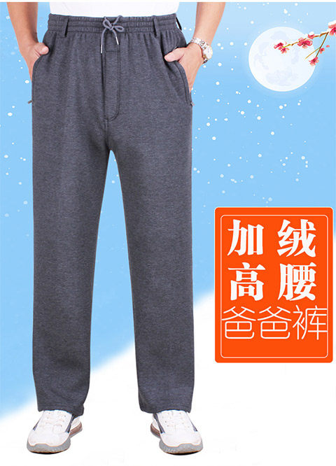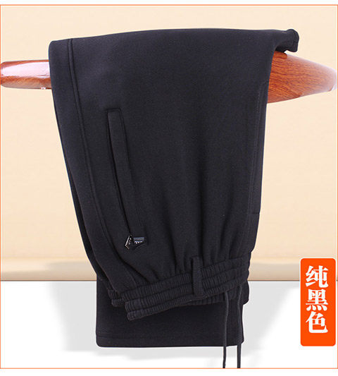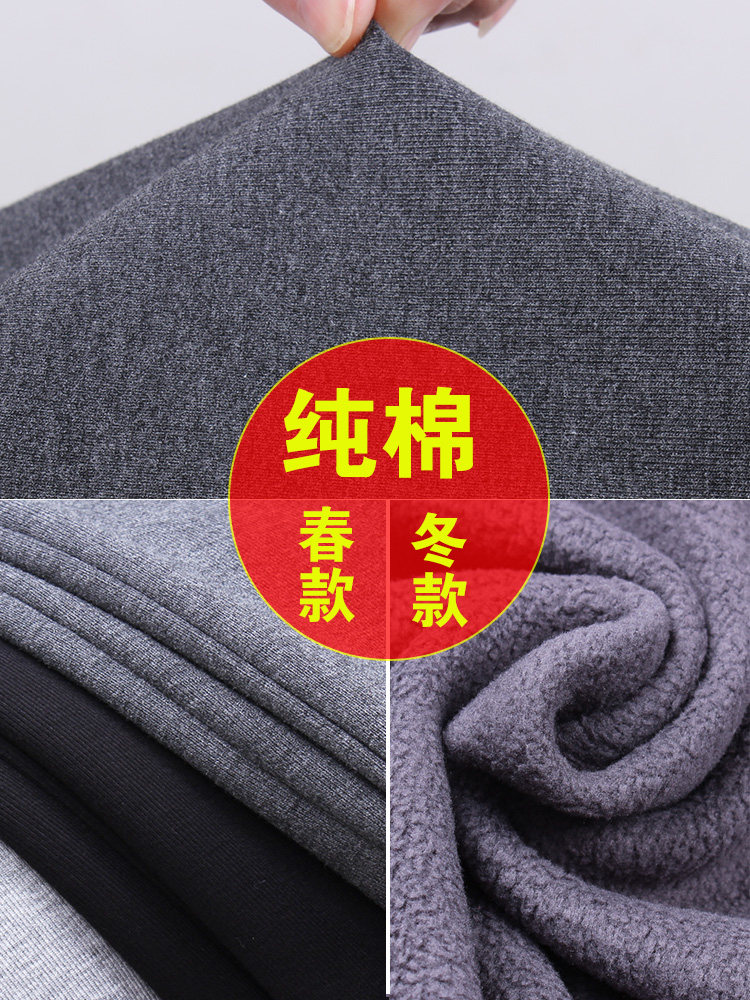 Демисезонные хлопковые мужские утепленные штаны, для среднего возраста, эластичная талия, свободный крой