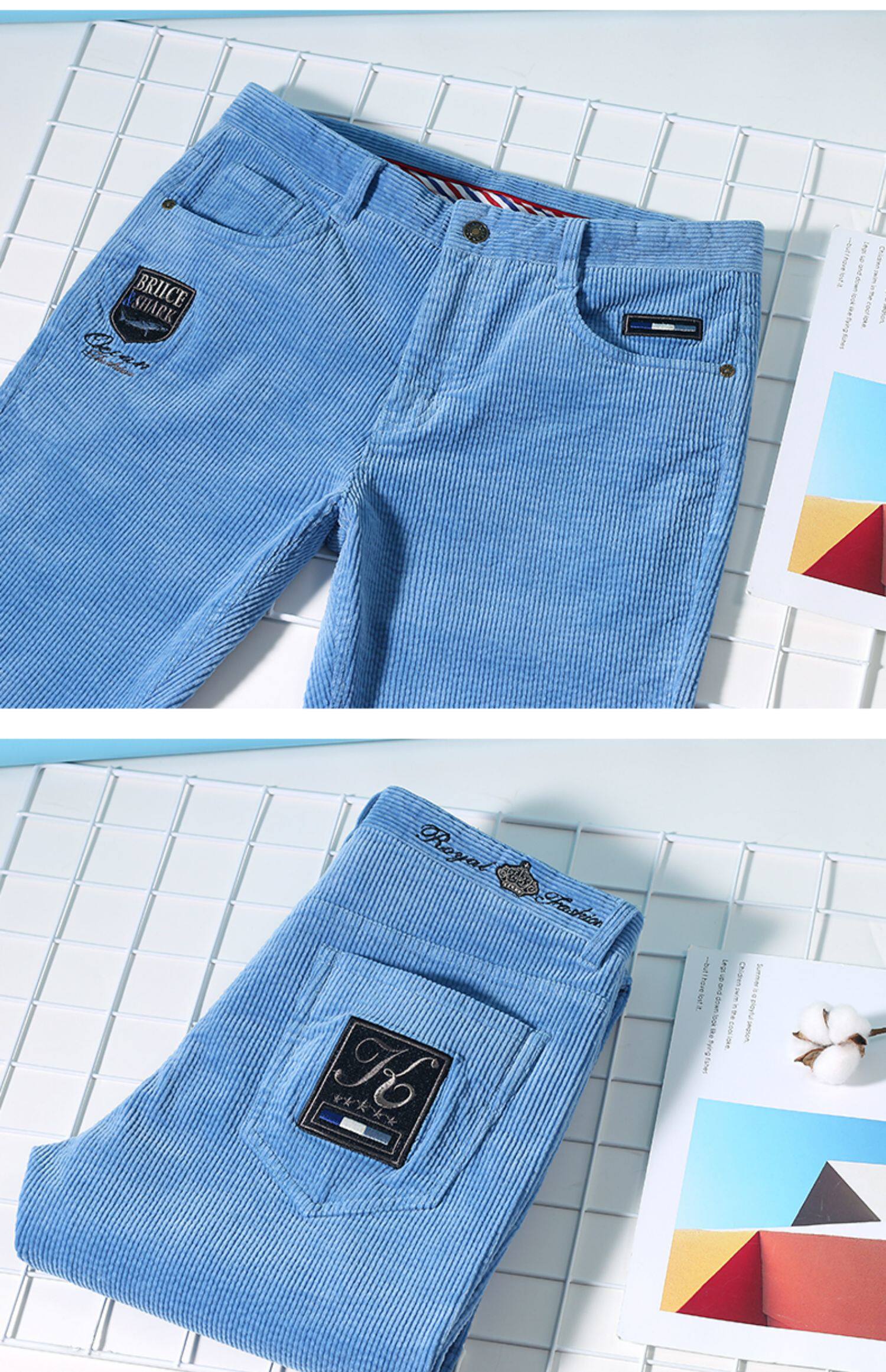 Демисезонные вельветовые штаны, акула, свободный прямой крой, большой размер