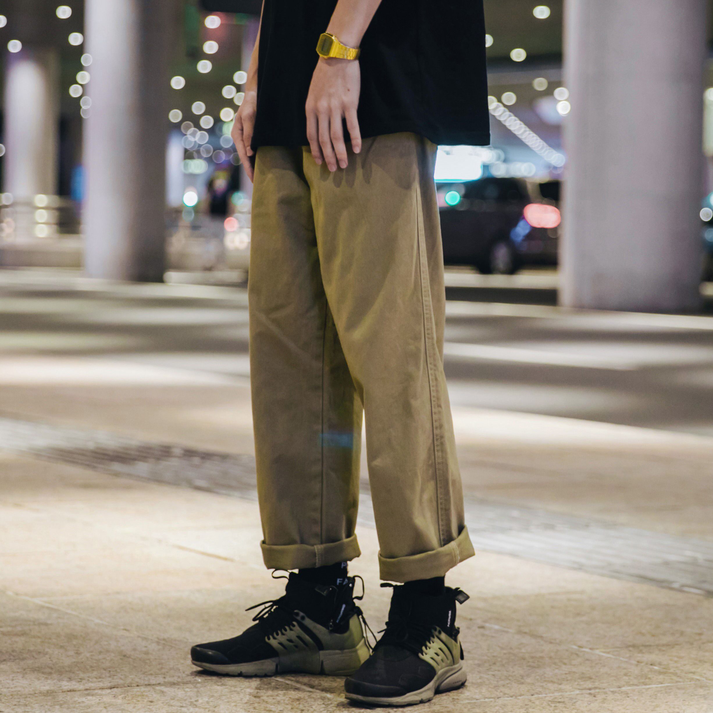 Желтые брендовые японские джинсы для отдыха, свободный прямой крой, оверсайз