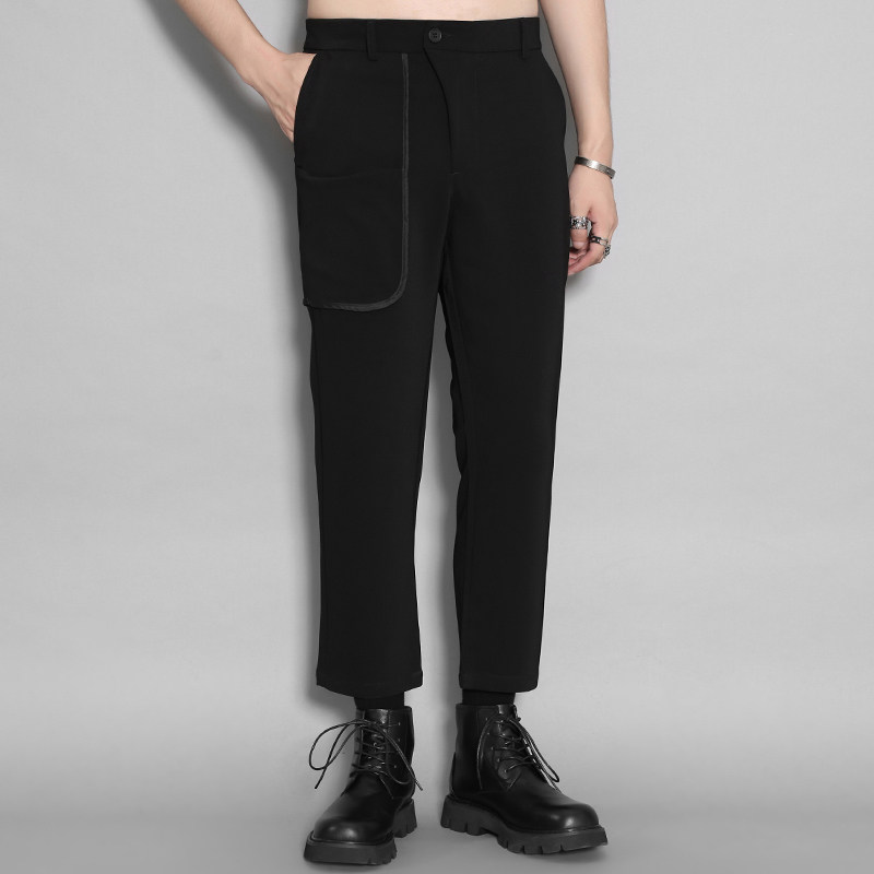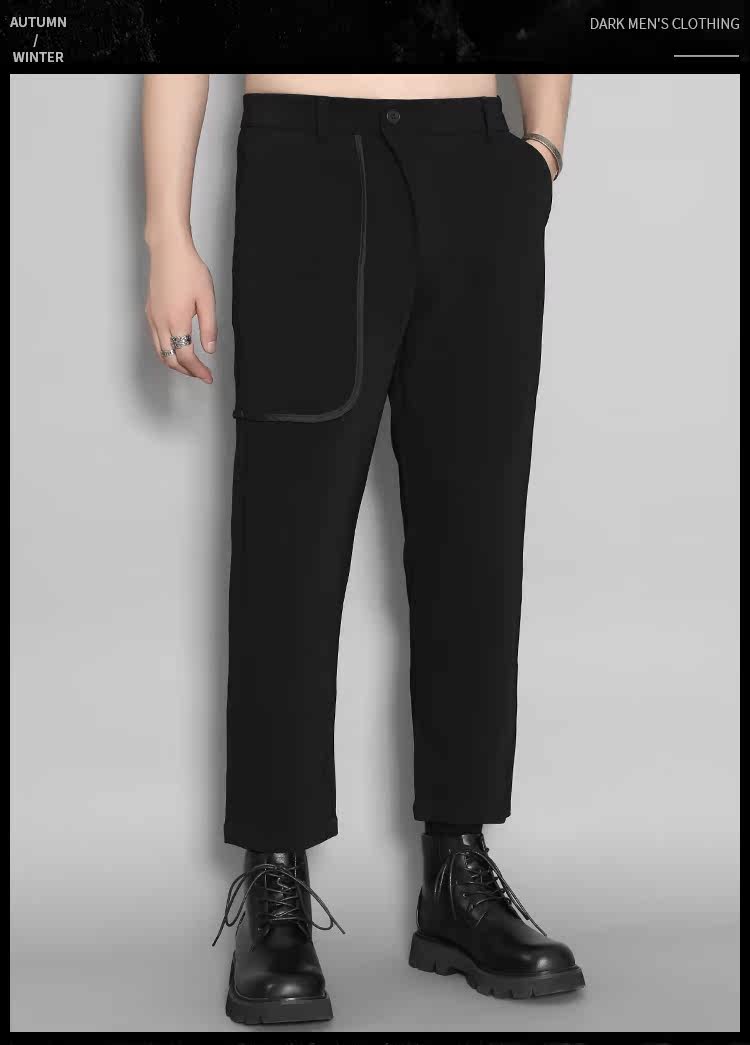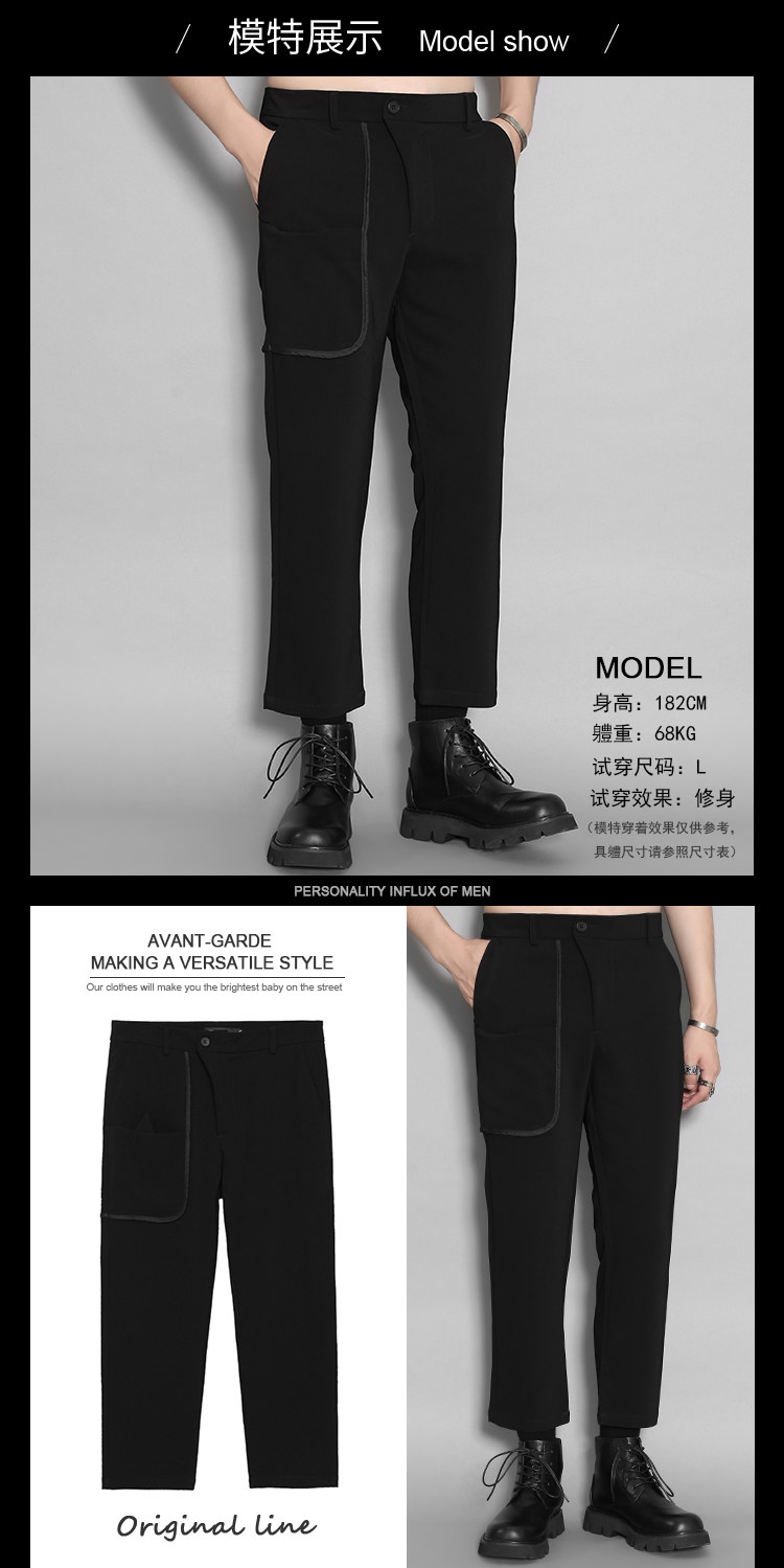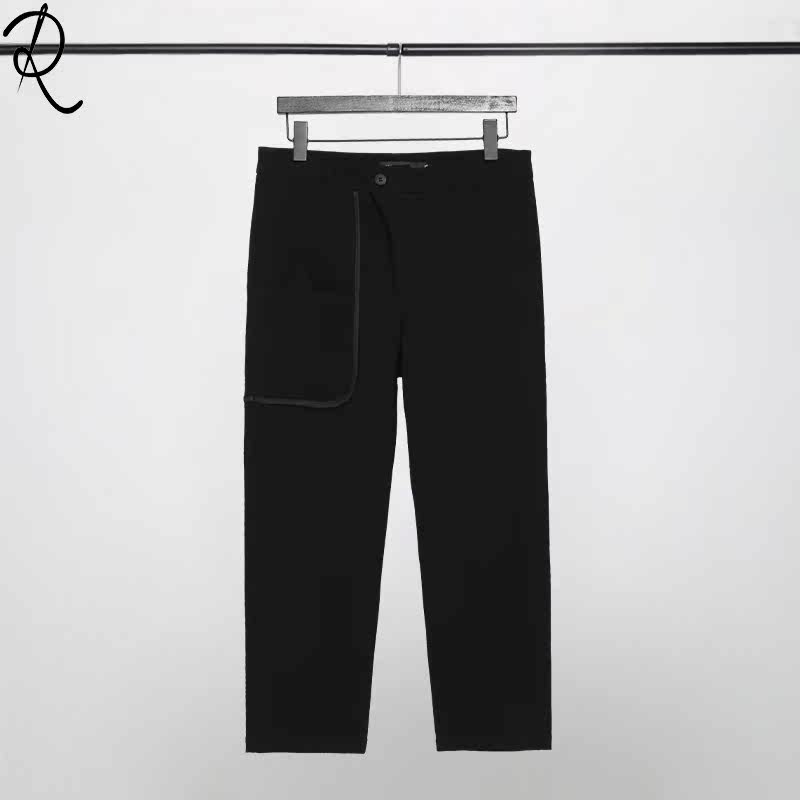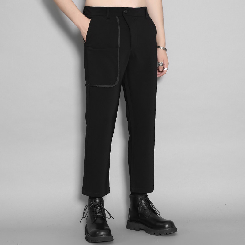 Оригинальная мужская одежда Осень Британская Гонконг Стиль личность Контрастная изогнутая края полоска кармана сращивание похудения дикие брюки Мужчина прилив