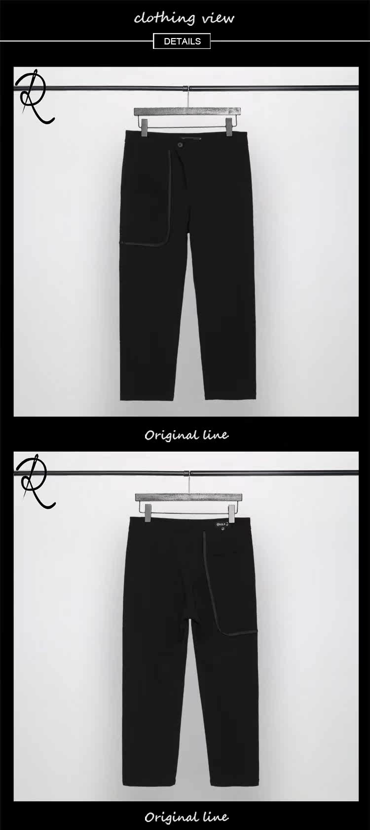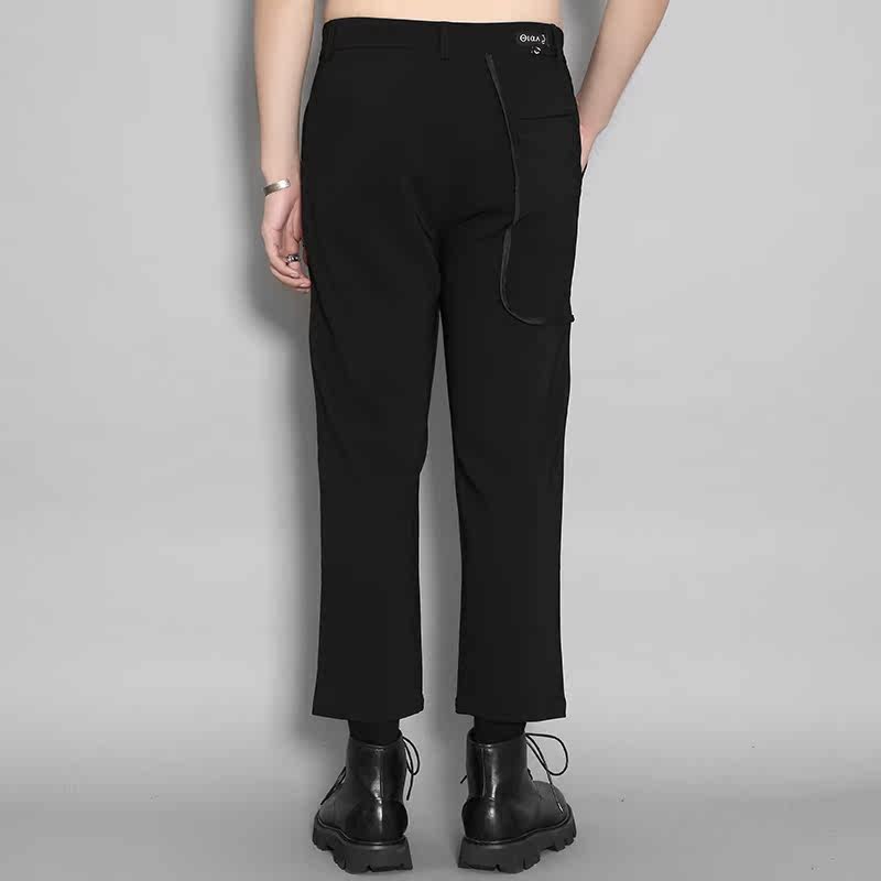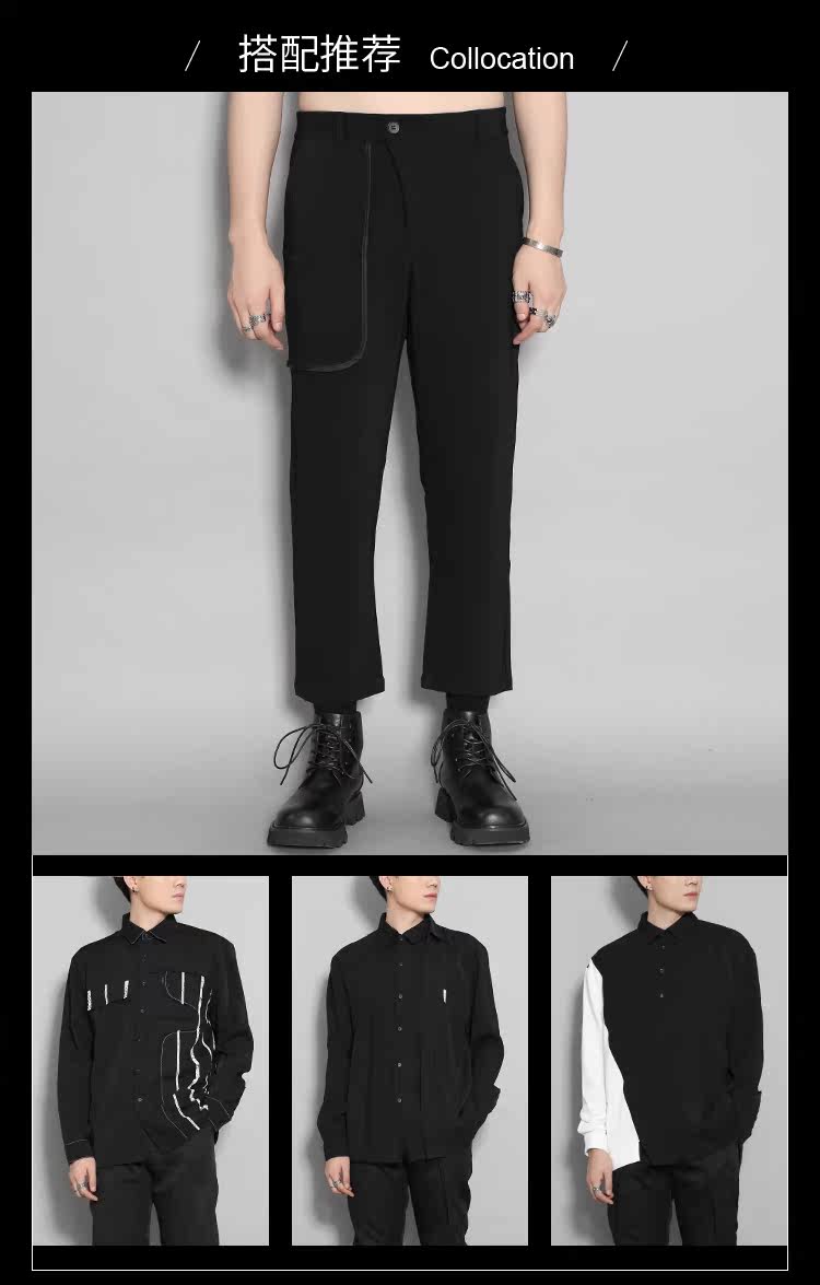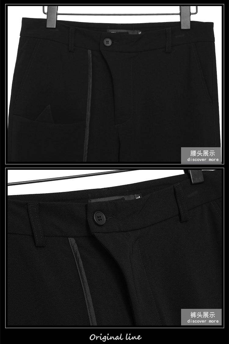 Оригинальная мужская одежда Осень Британская Гонконг Стиль личность Контрастная изогнутая края полоска кармана сращивание похудения дикие брюки Мужчина прилив