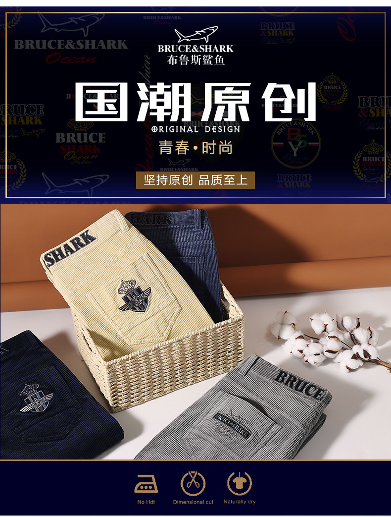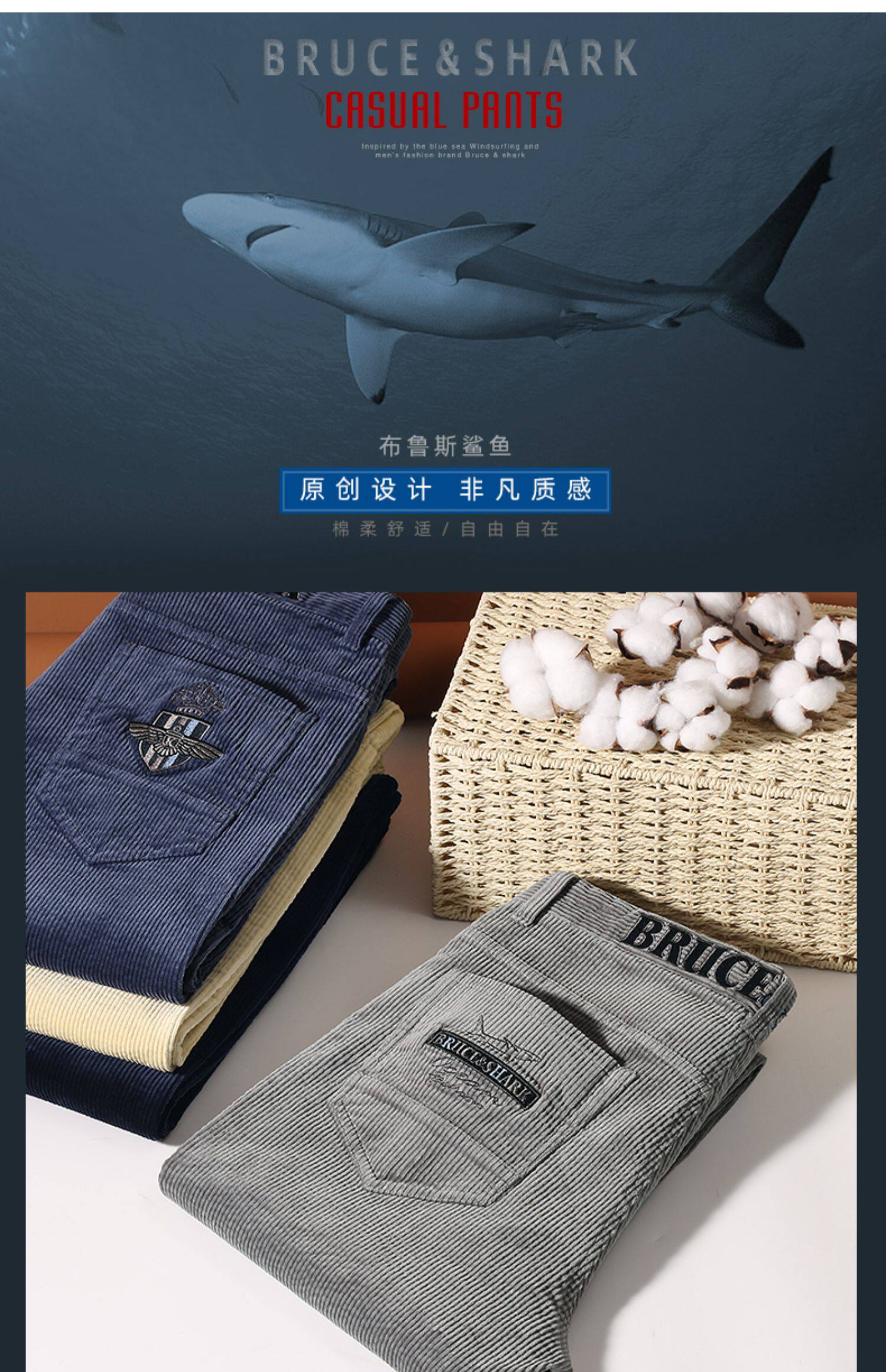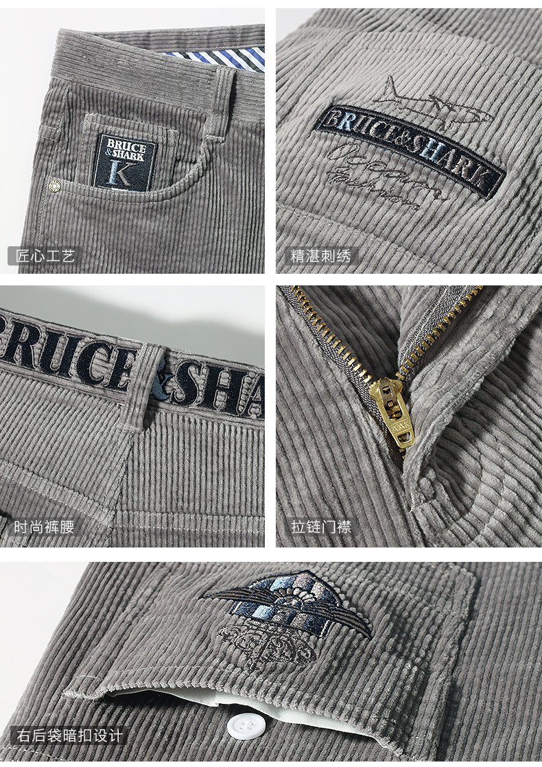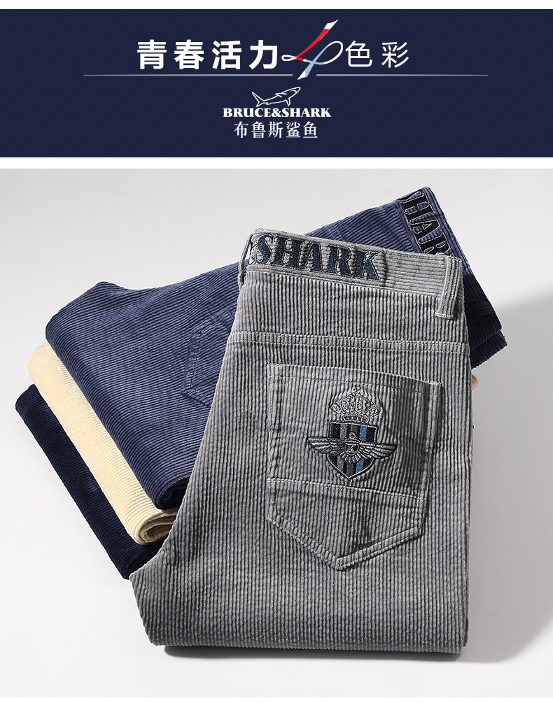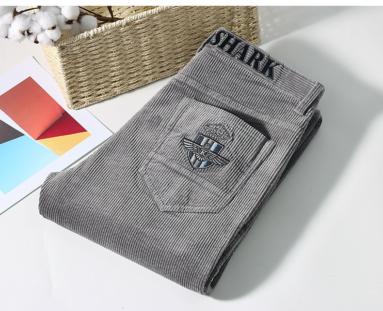 Демисезонные вельветовые штаны, акула, свободный прямой крой, большой размер