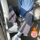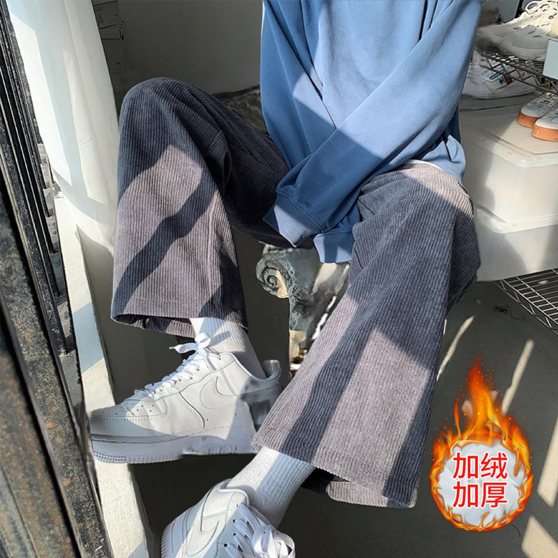Вельветовые трендовые утепленные цветные штаны, свободный прямой крой, оверсайз