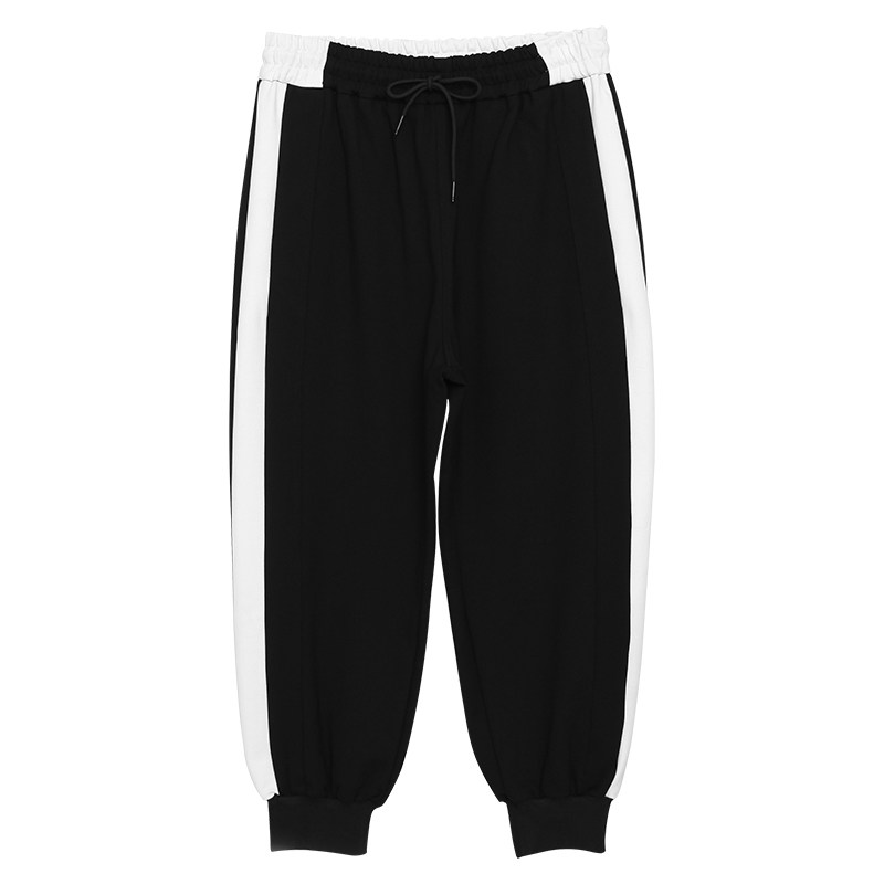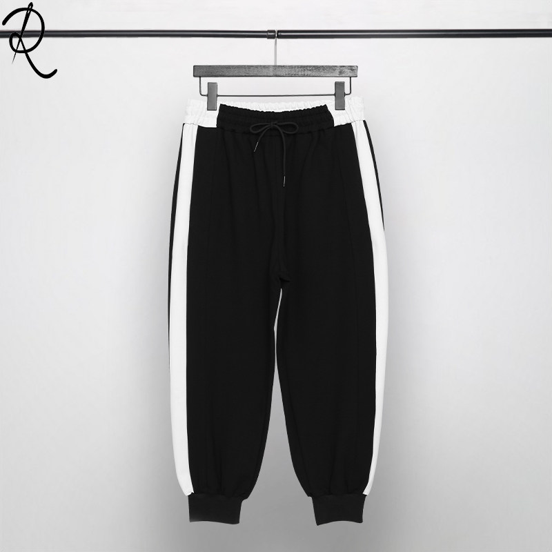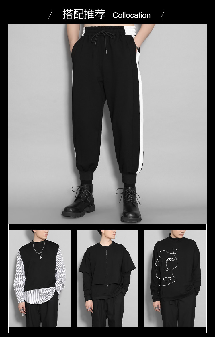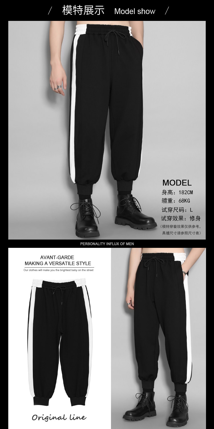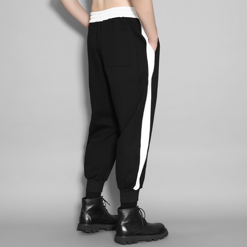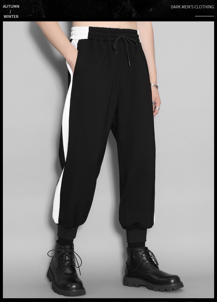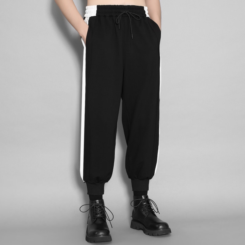 Оригинальный мужской британский гонконгский стиль, индивидуальный тренд, черно-белый контрастный цвет, повседневные эластичные брюки с девятью точками для мужчин, свободные