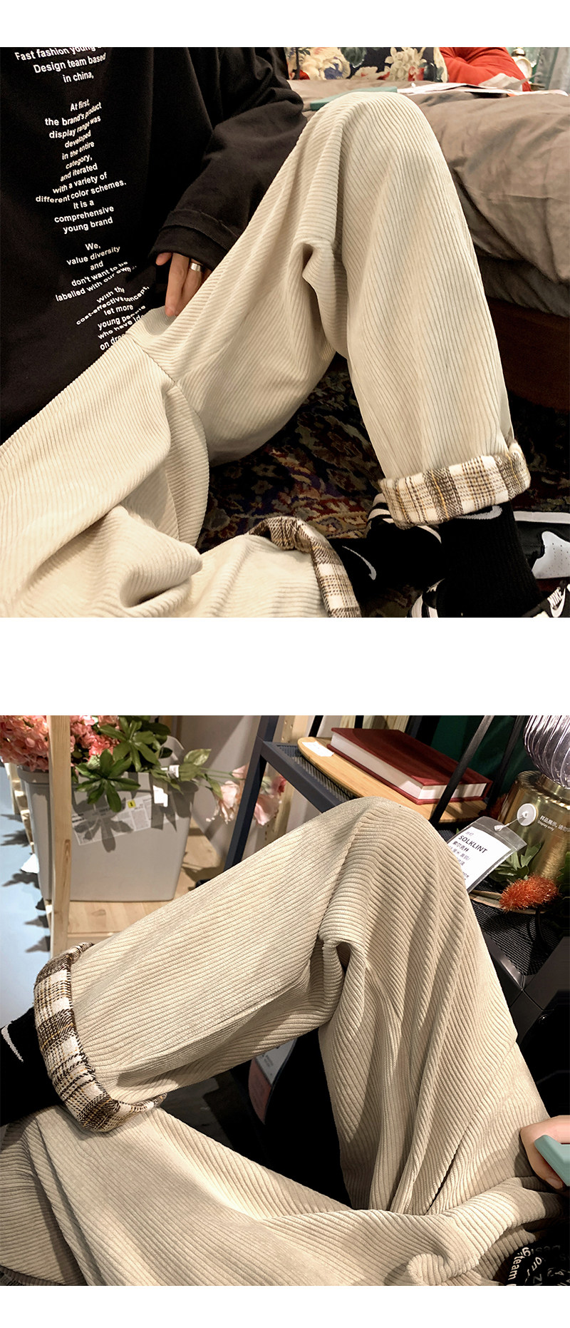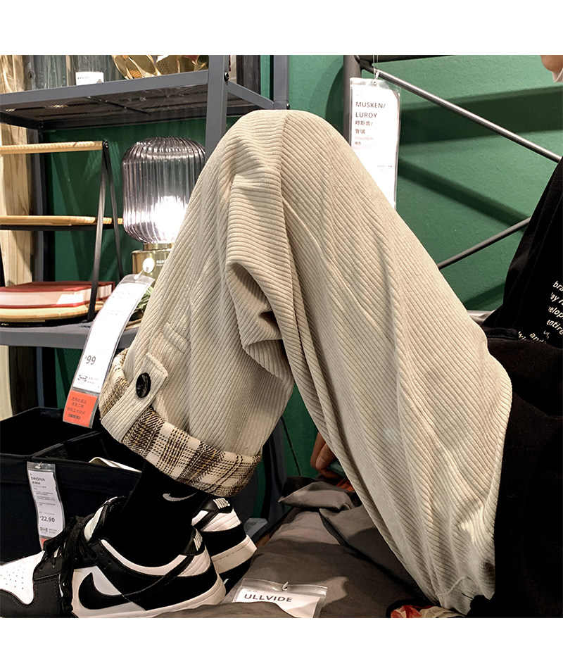 Вельветовые демисезонные трендовые спортивные зимние штаны для отдыха, в корейском стиле, свободный прямой крой
