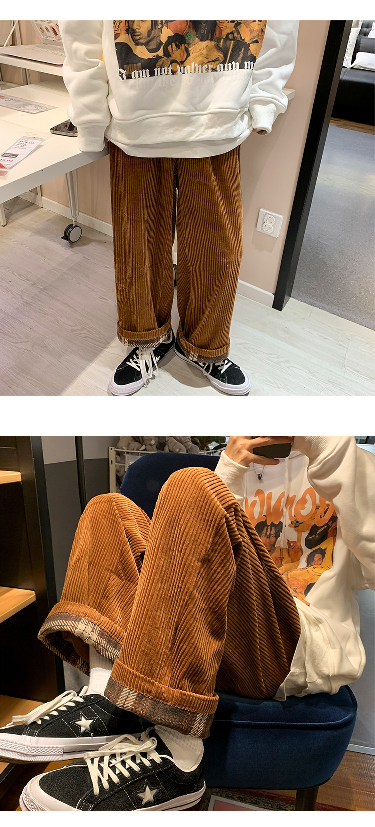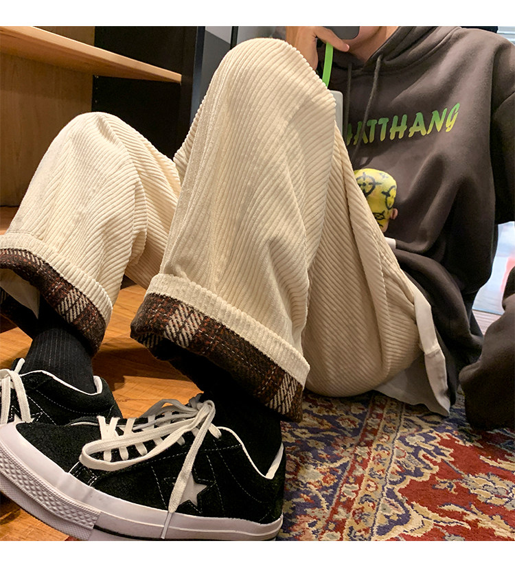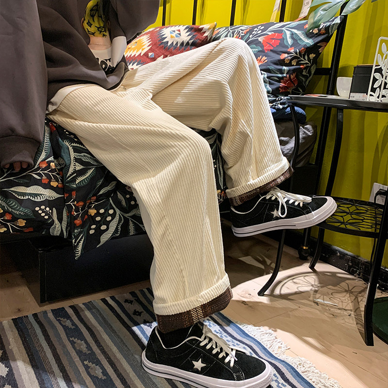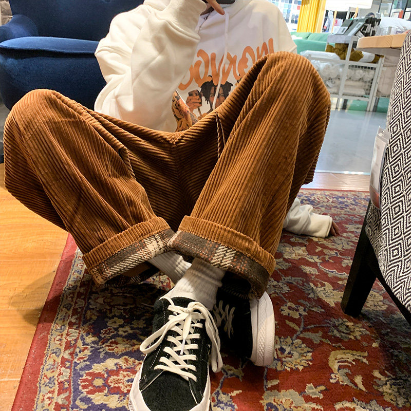 Зимние вельветовые японские ретро трендовые брендовые штаны, оверсайз, свободный прямой крой