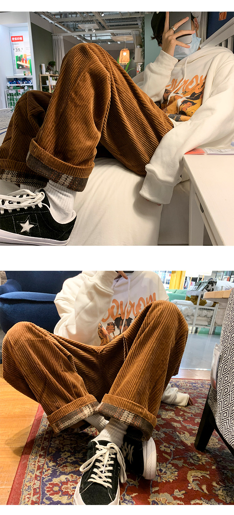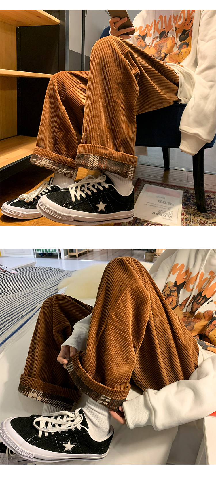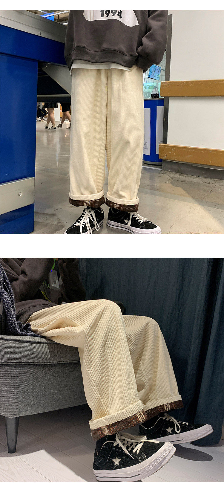 Зимние вельветовые японские ретро трендовые брендовые штаны, оверсайз, свободный прямой крой