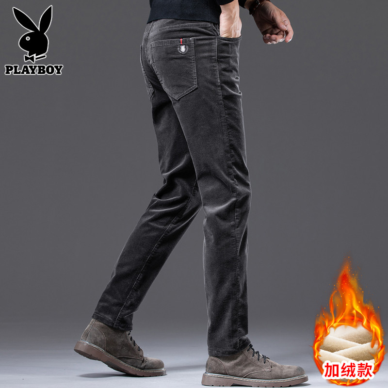 Playboy, мужские вельветовые штаны, осенние трендовые повседневные брюки, облегающий крой