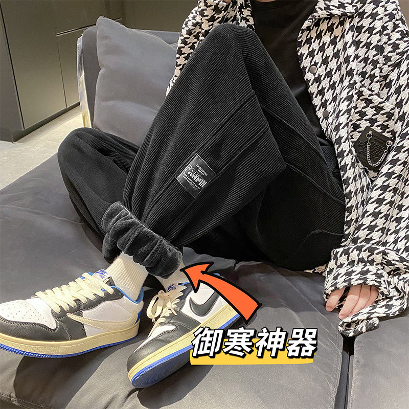Штаны, демисезонные вельветовые джинсы с начесом, коллекция 2021, свободный прямой крой