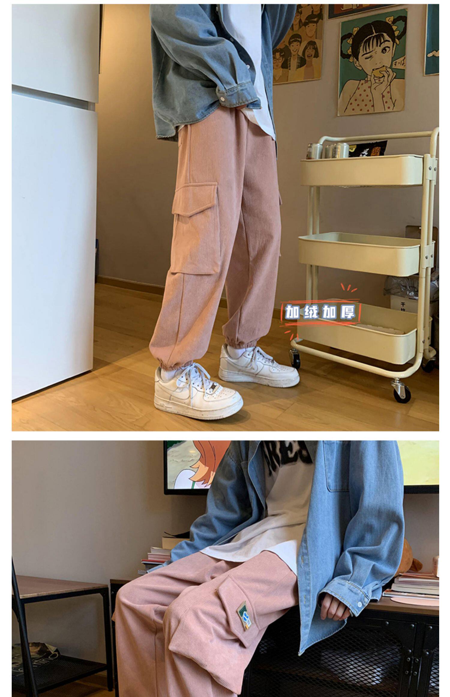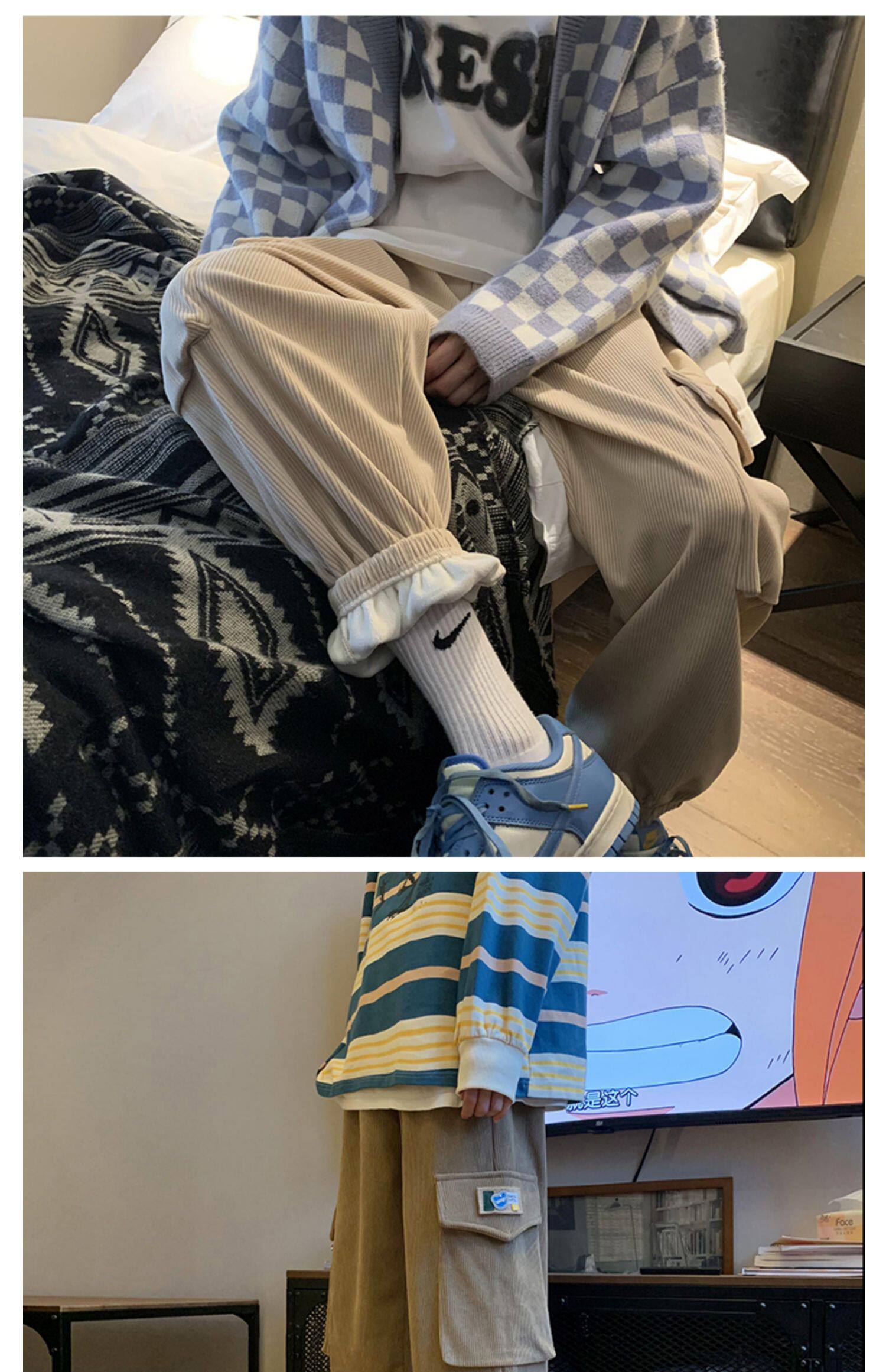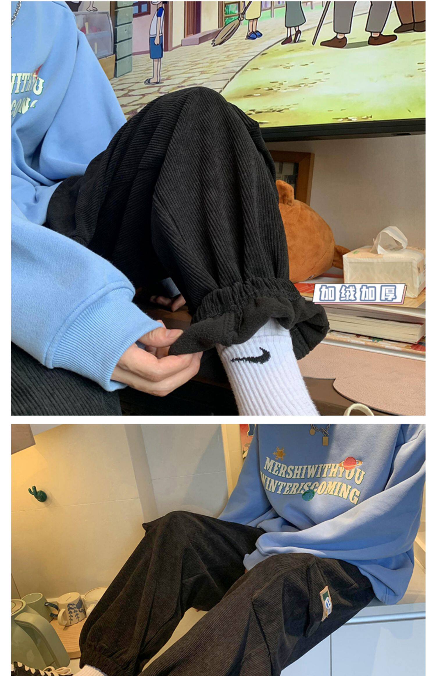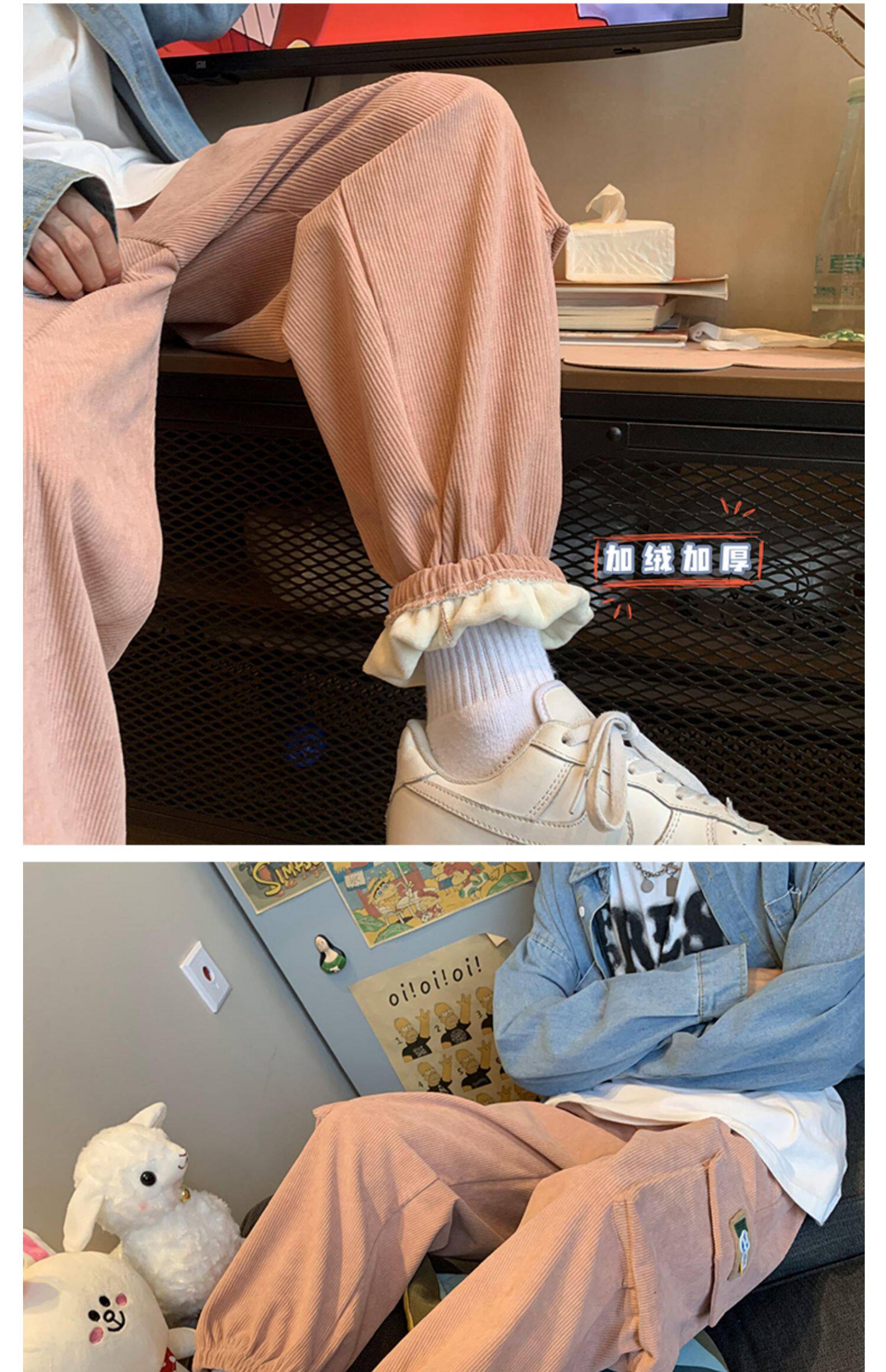 Удерживающий тепло вельветовый мешочек, трендовые штаны, большой размер, в корейском стиле