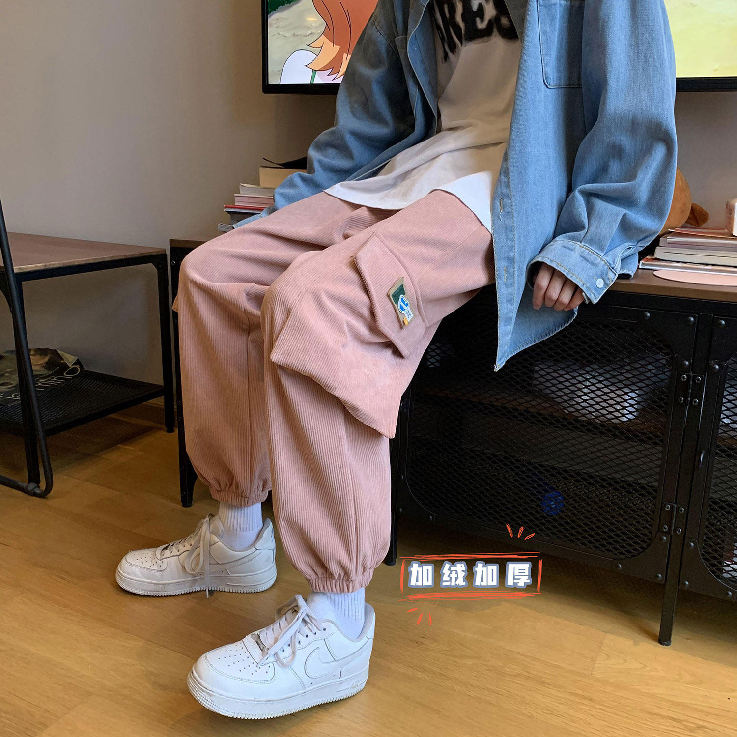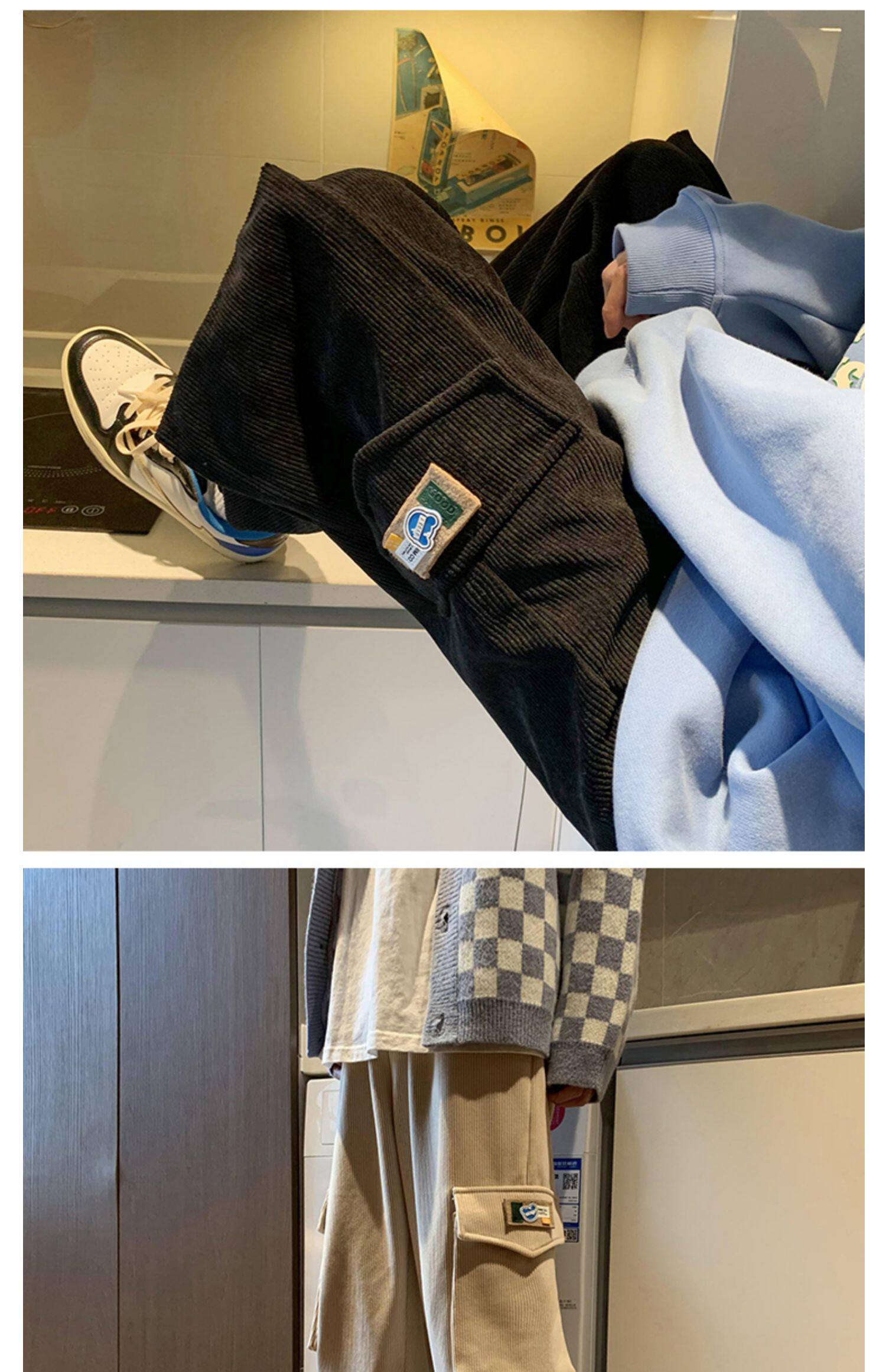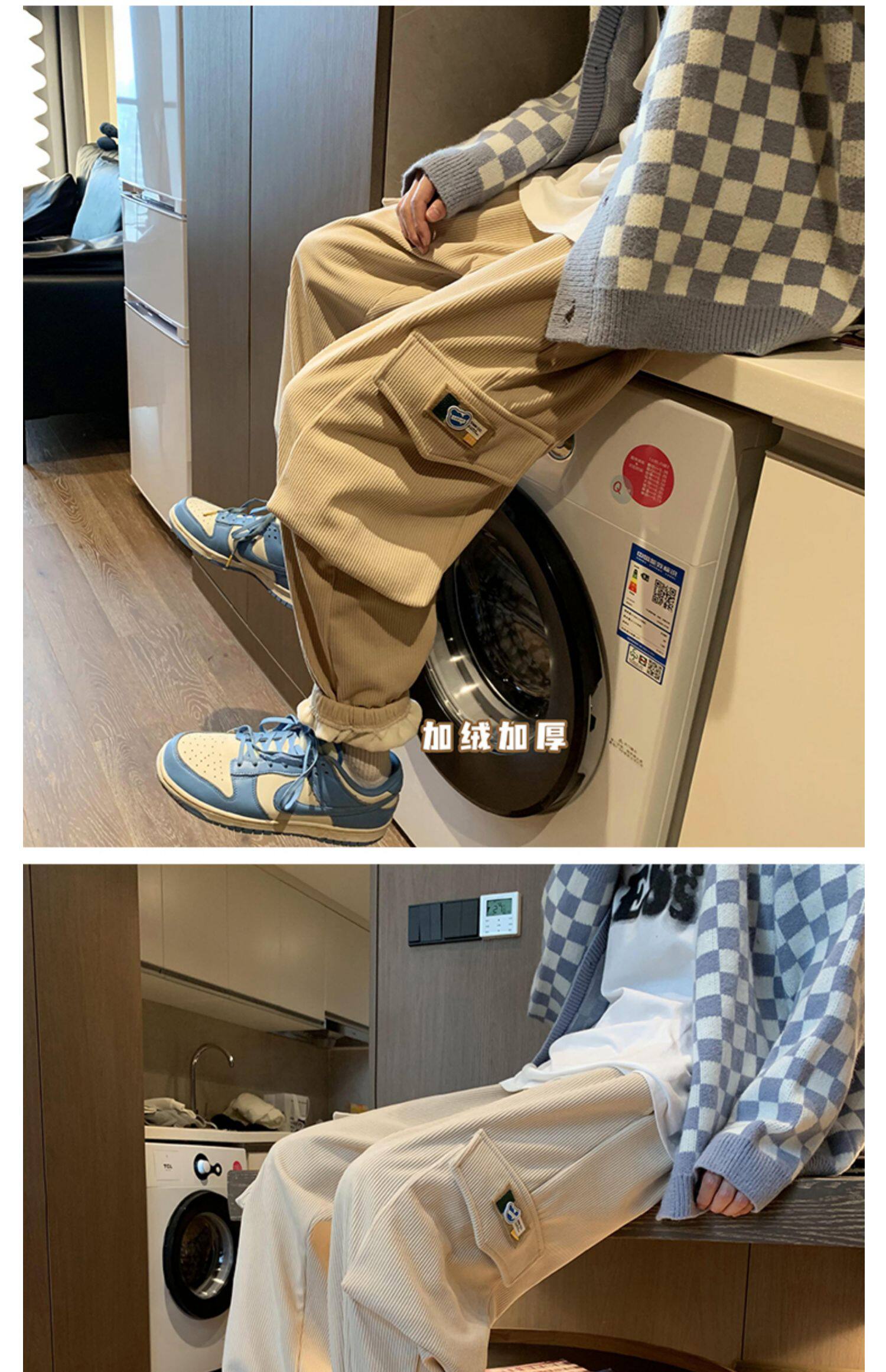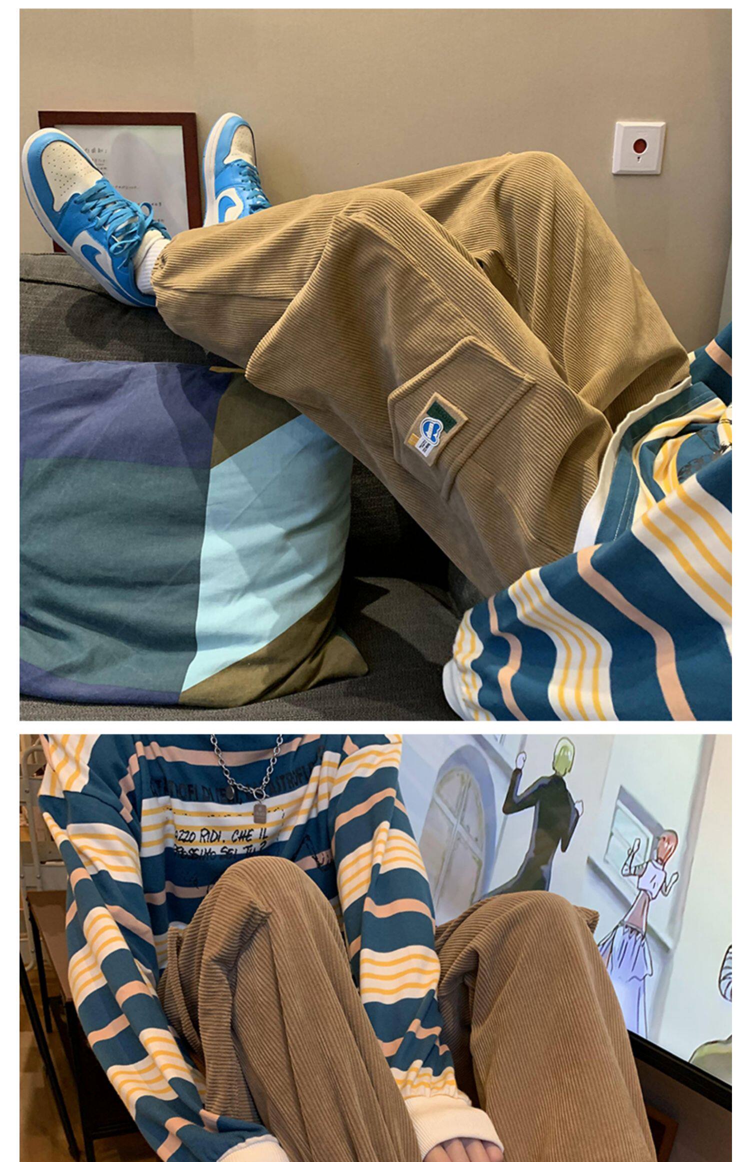 Удерживающий тепло вельветовый мешочек, трендовые штаны, большой размер, в корейском стиле