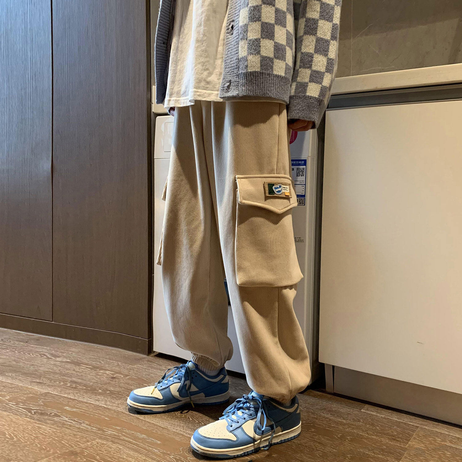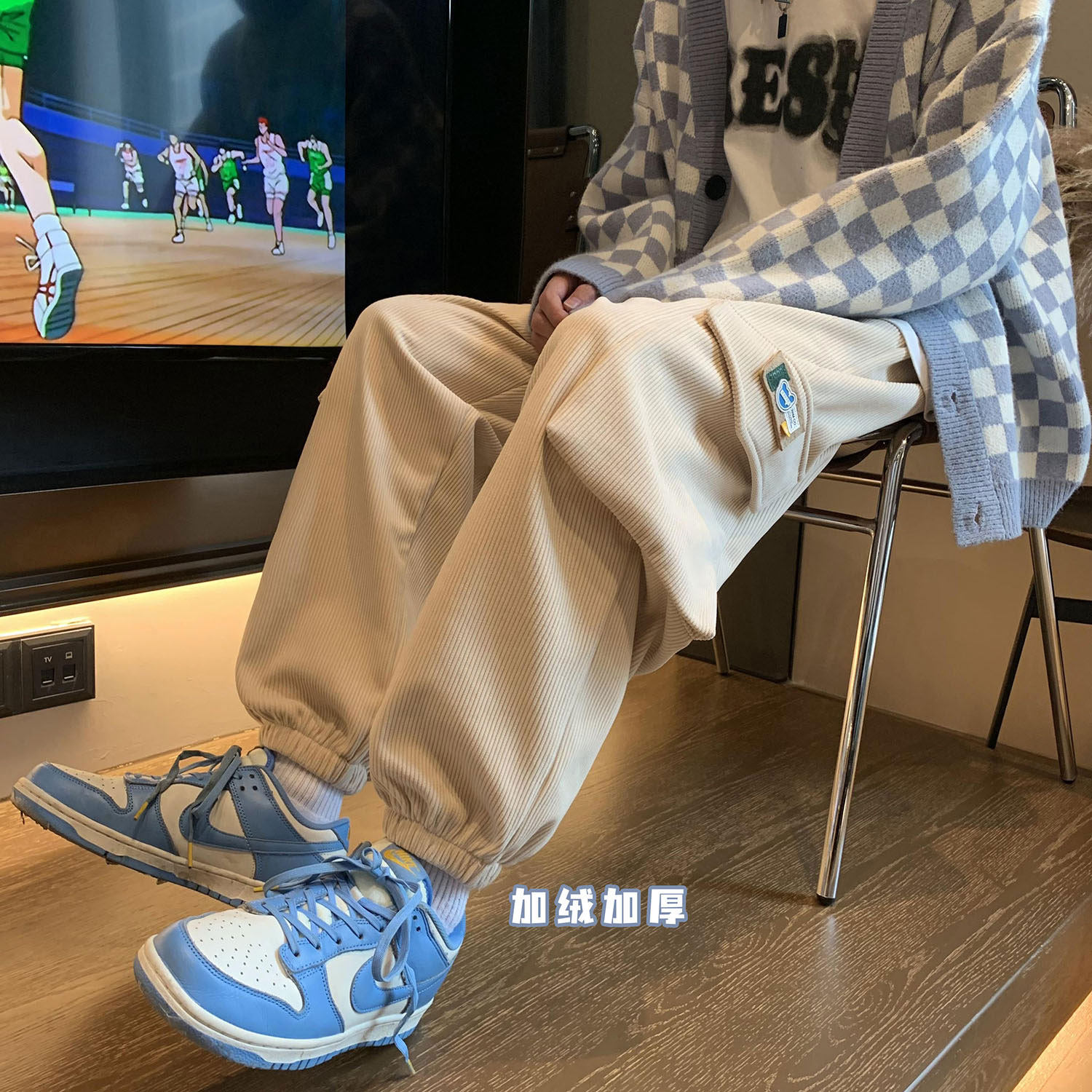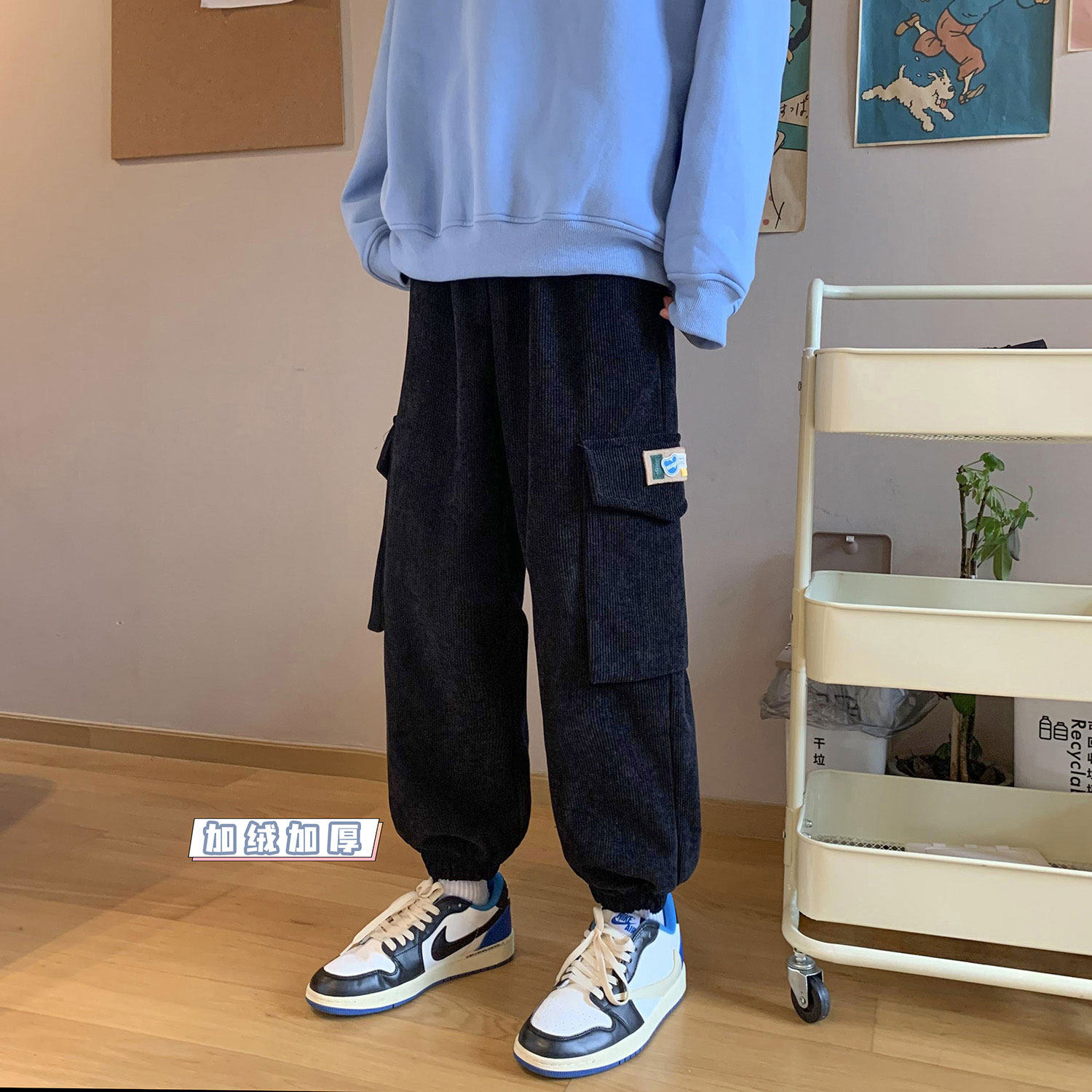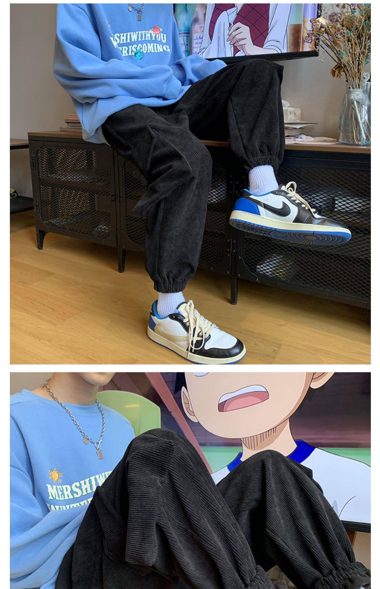 Удерживающий тепло вельветовый мешочек, трендовые штаны, большой размер, в корейском стиле