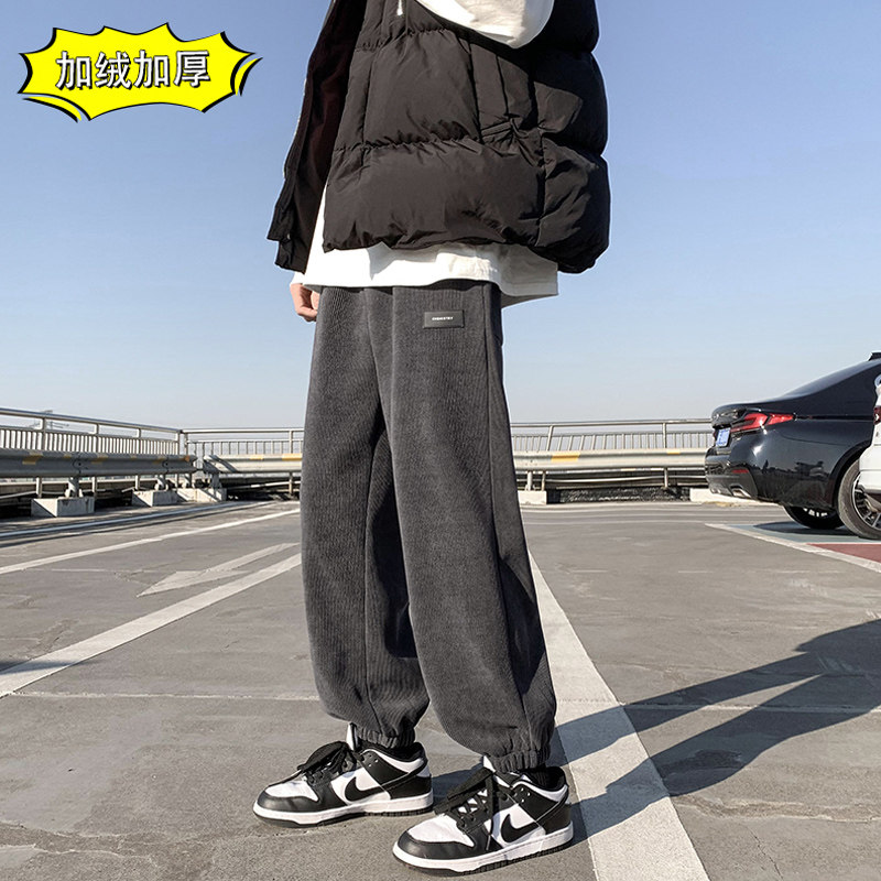 Вельветовые зимние штаны, трендовые универсальные демисезонные джинсы с начесом