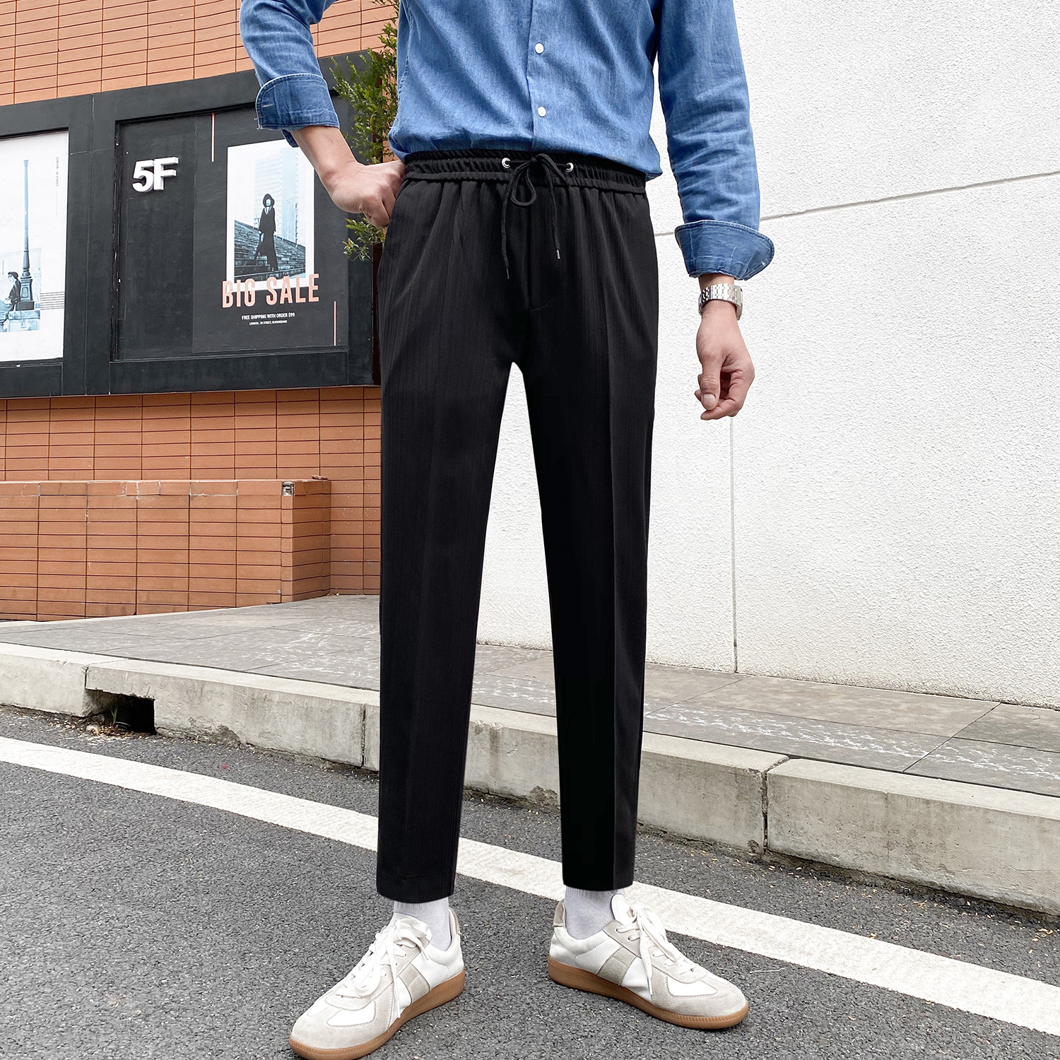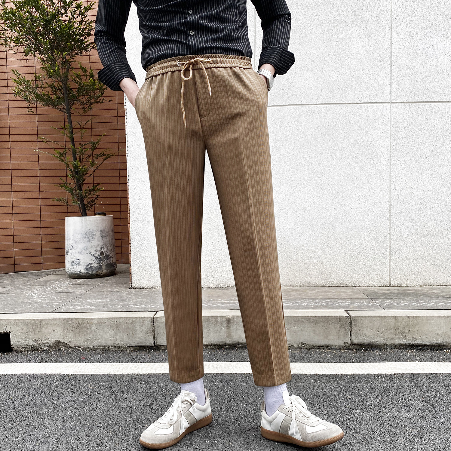 Мужские трендовые осенние штаны, в корейском стиле, свободный прямой крой, эластичная талия