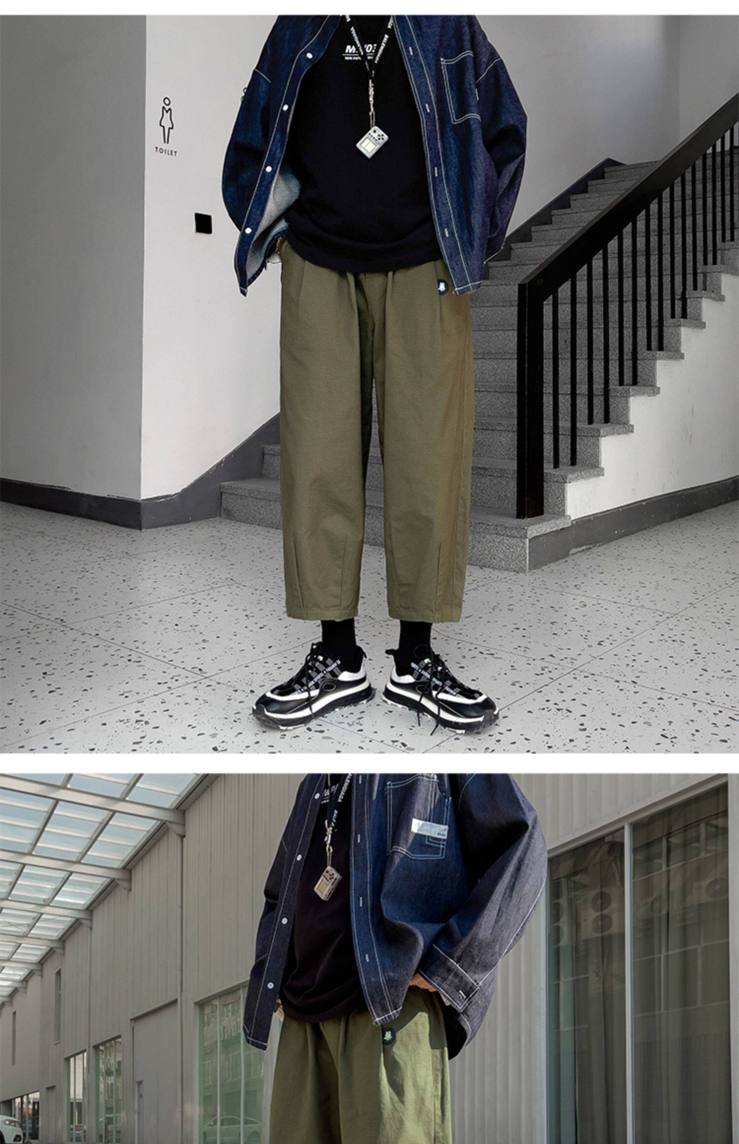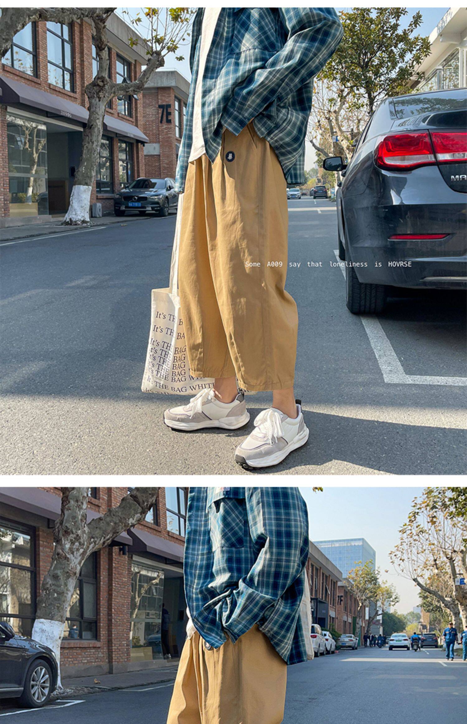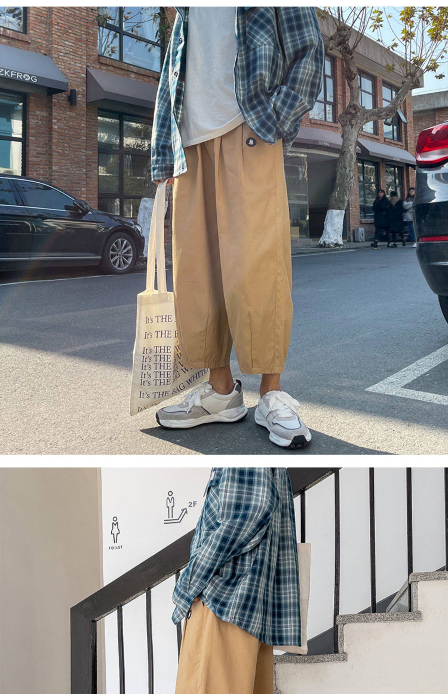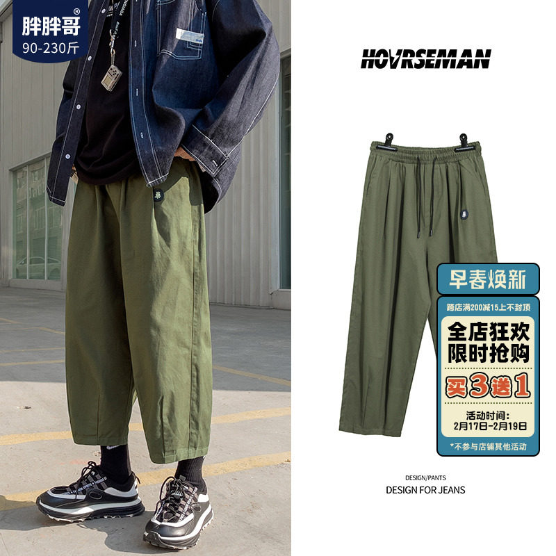 Японские демисезонные штаны, большой размер, в американском стиле, свободный прямой крой