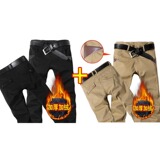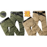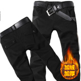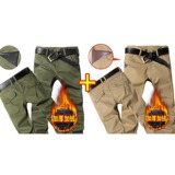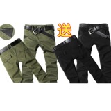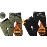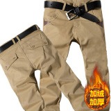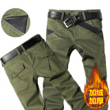 Мужские осенние демисезонные хлопковые износостойкие флисовые штаны, свободный прямой крой