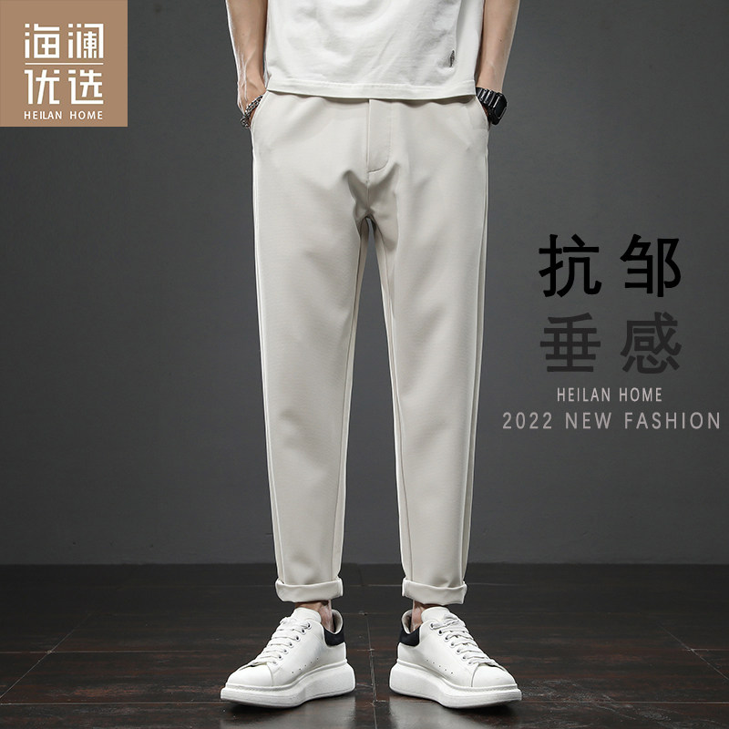 Летние тонкие мужские трендовые штаны, свободный прямой крой