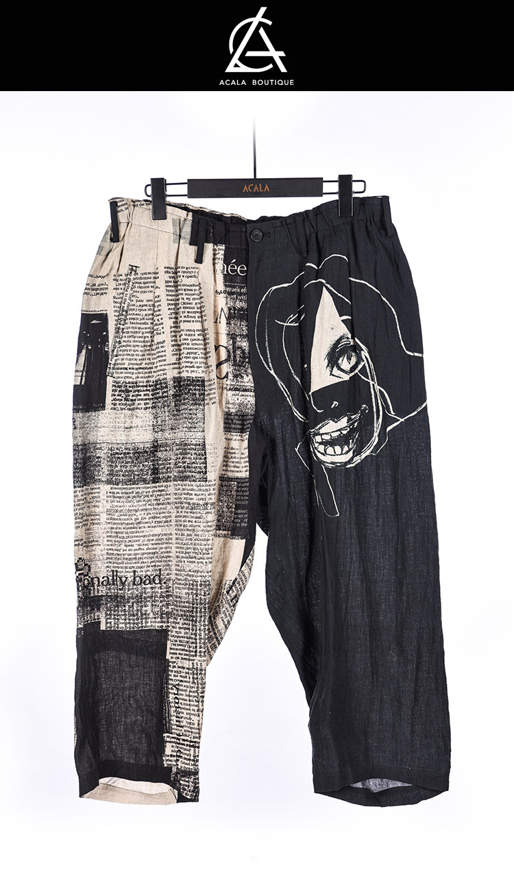 Акала Пятно Йохджи Ямамото нерегулярная газета правой ноги Аватар сшитыми штаны