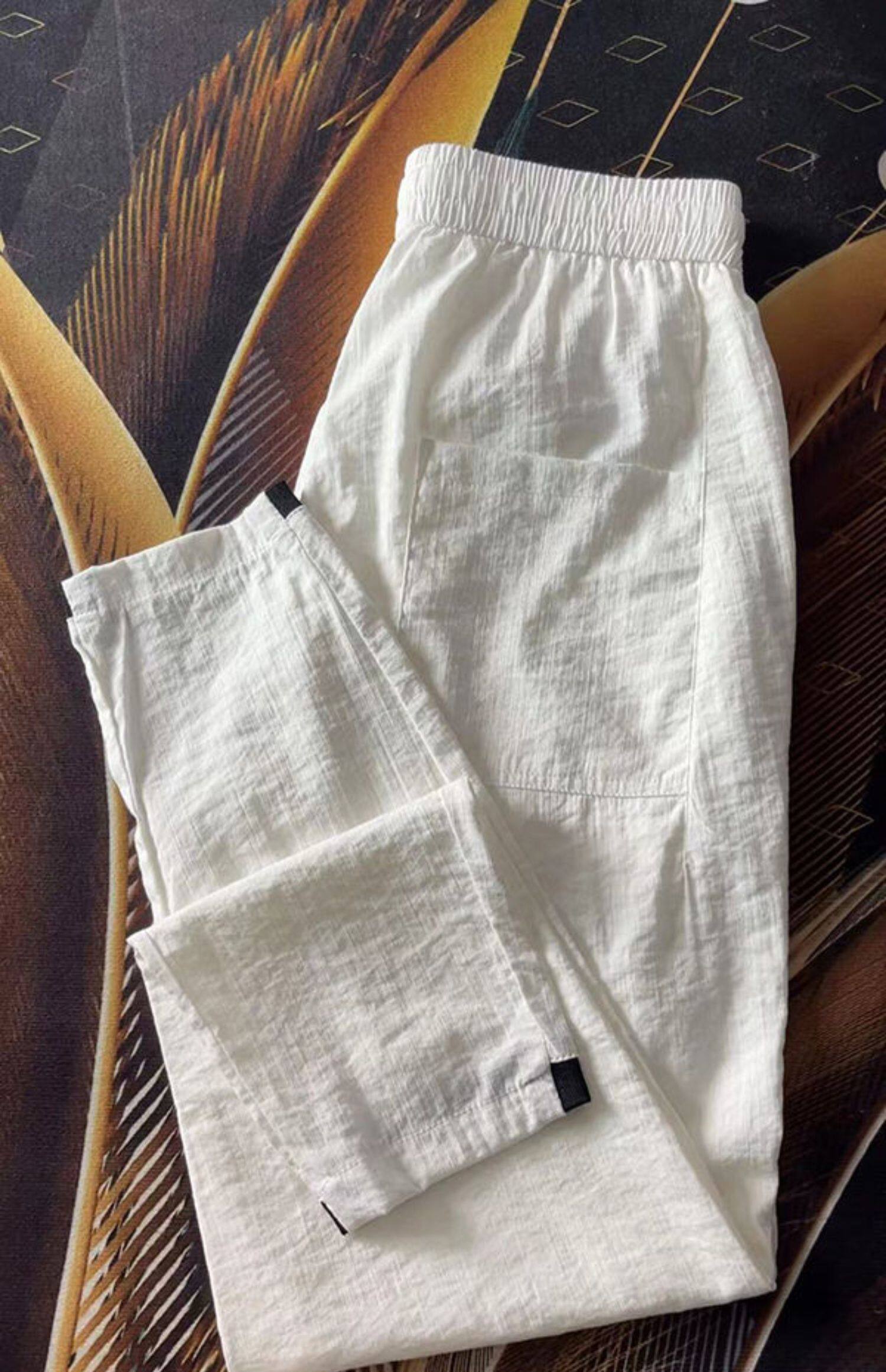 Мужские летние тонкие повседневные брюки, универсальные штаны, из хлопка и льна