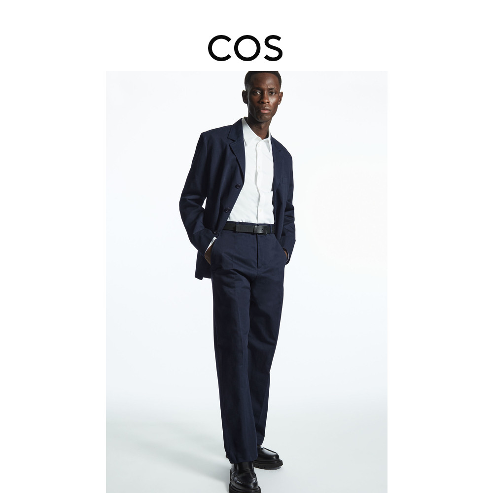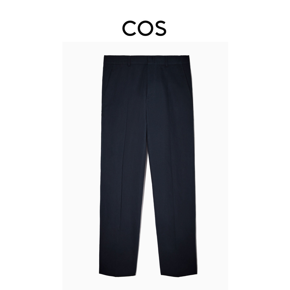 COS Мужские стандартные зауженные брюки со складками темно-синего цвета, новинка 1065217001