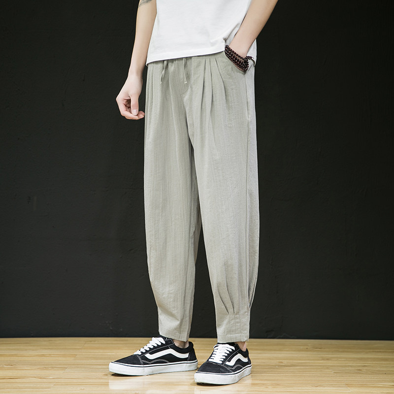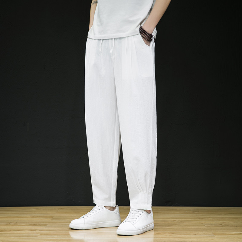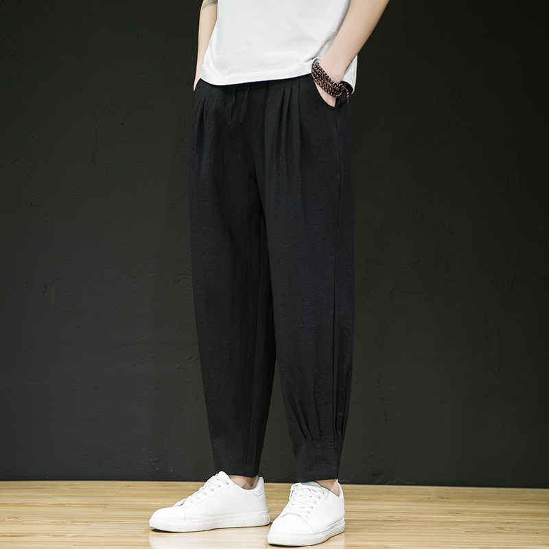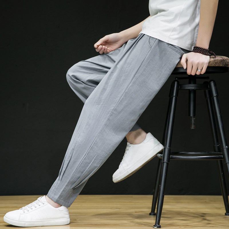 Тонкие летние штаны, из хлопка и льна, свободный крой, китайский стиль