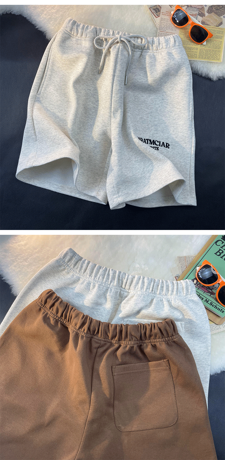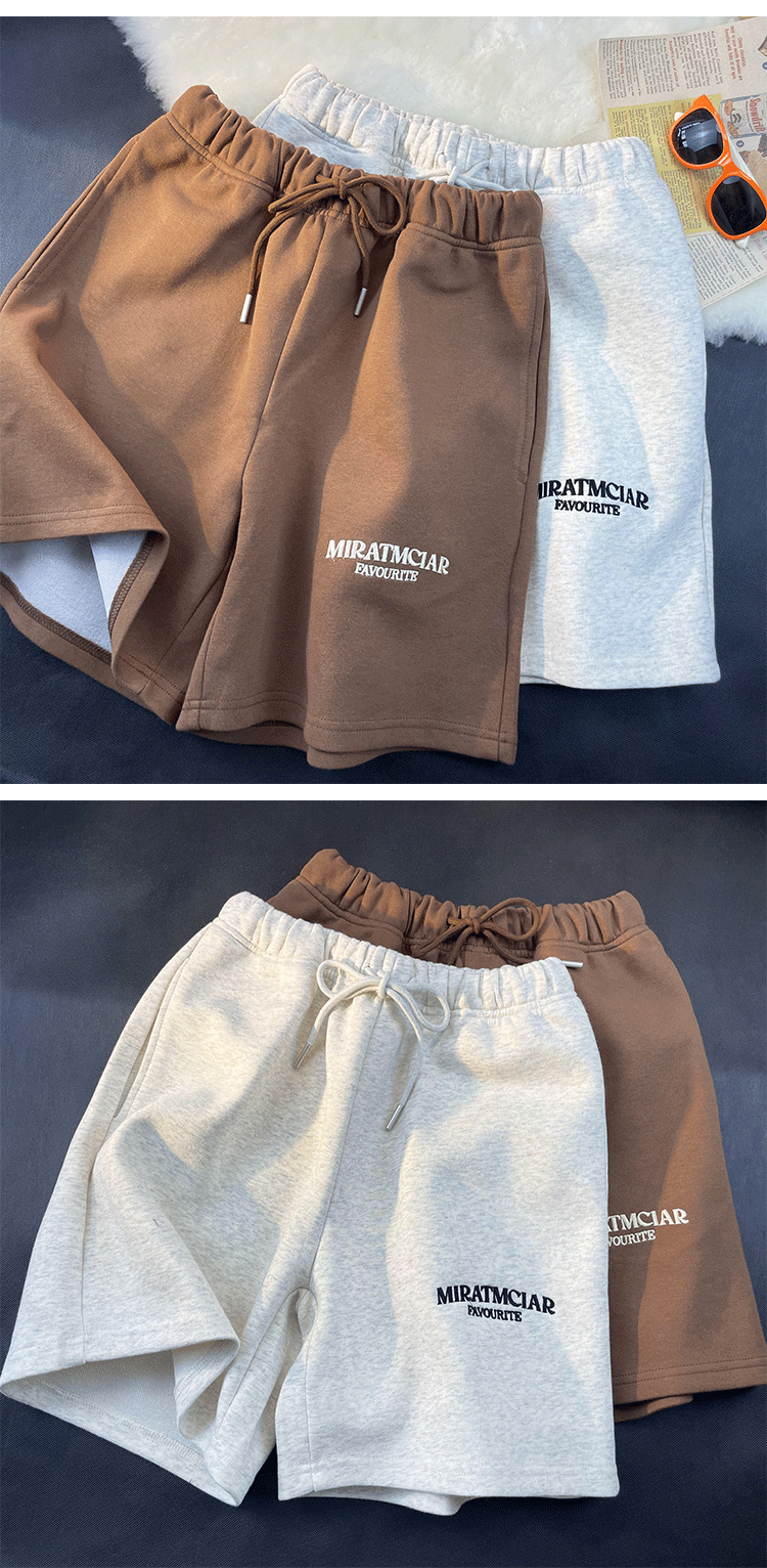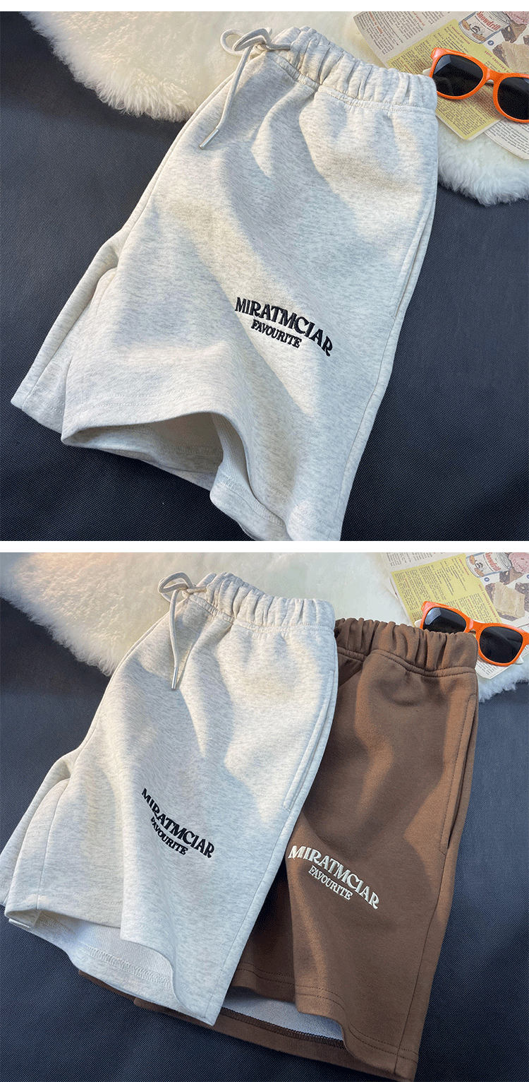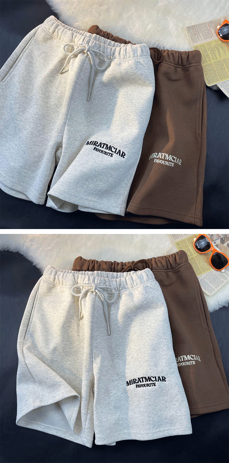 Шорты, базовые штаны для отдыха, в американском стиле, свободный прямой крой, с вышивкой