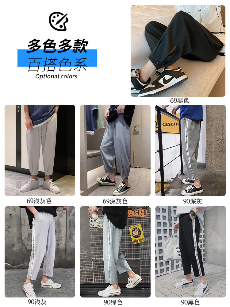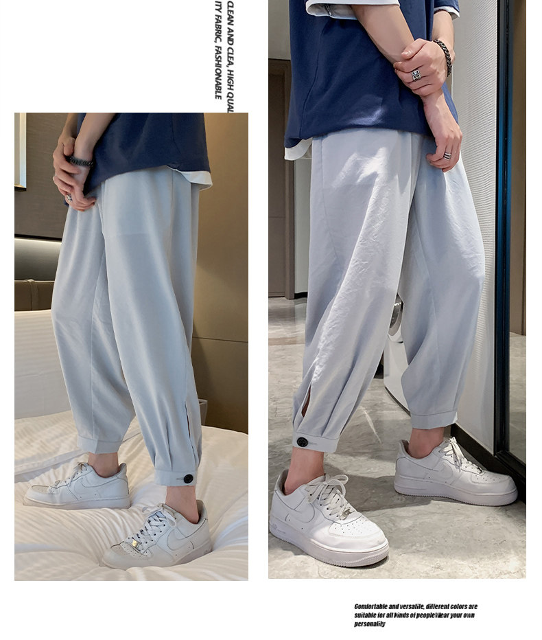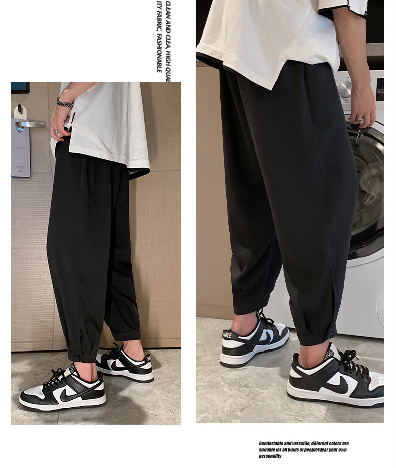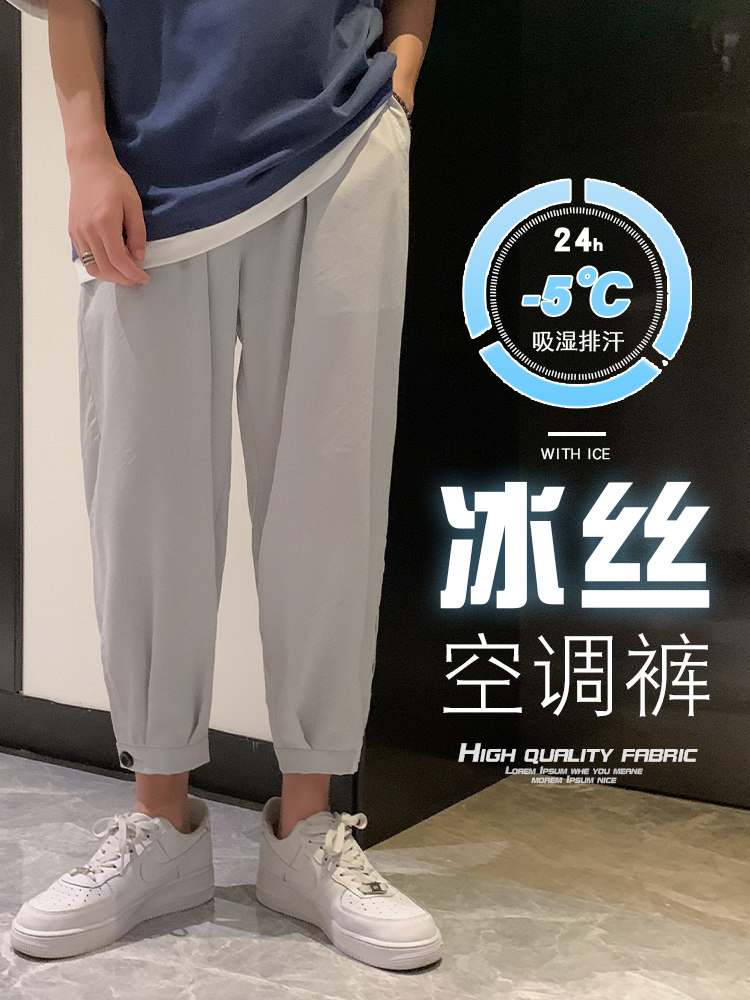 Мужские летние тонкие шелковые спортивные трендовые универсальные штаны