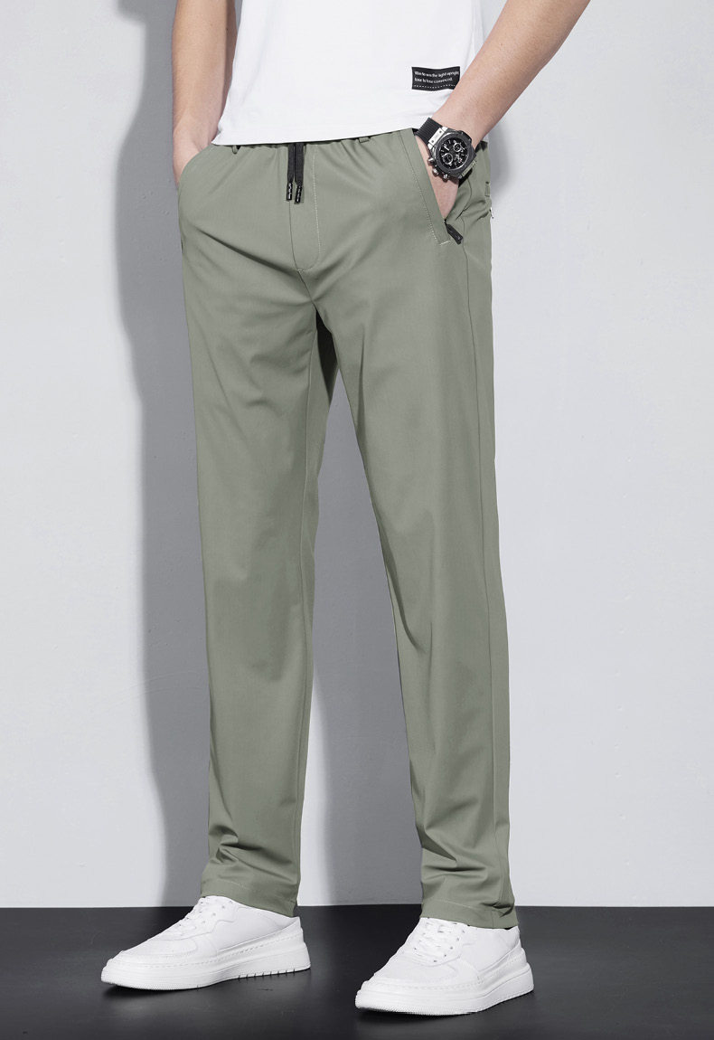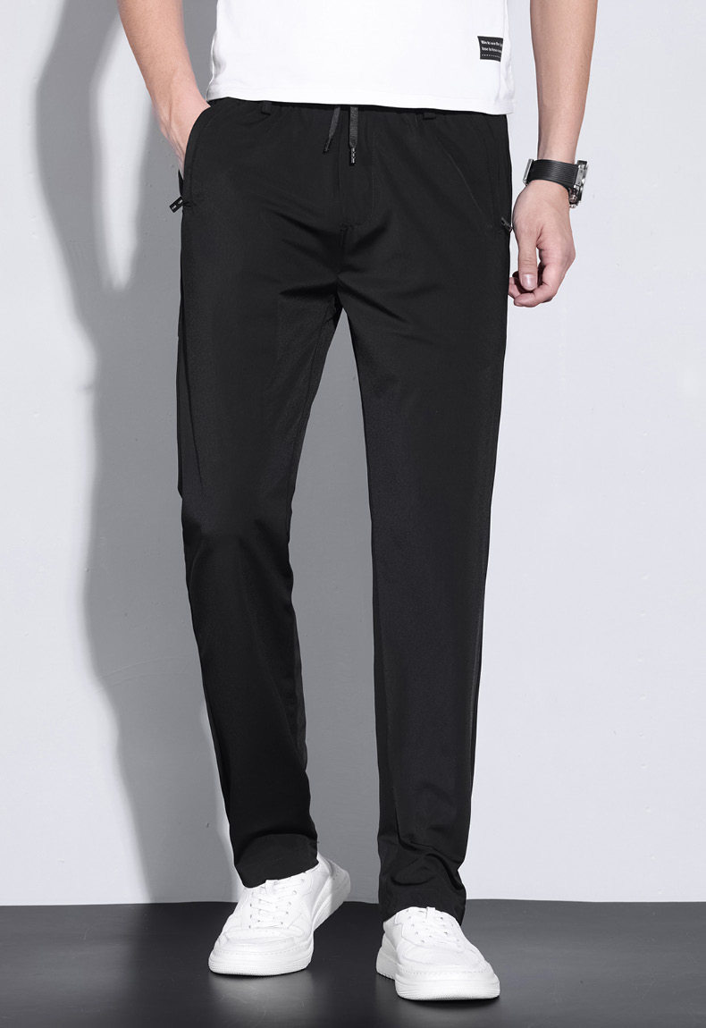 Мужские шелковые осенние тонкие трендовые быстросохнущие эластичные штаны, свободный прямой крой, в корейском стиле