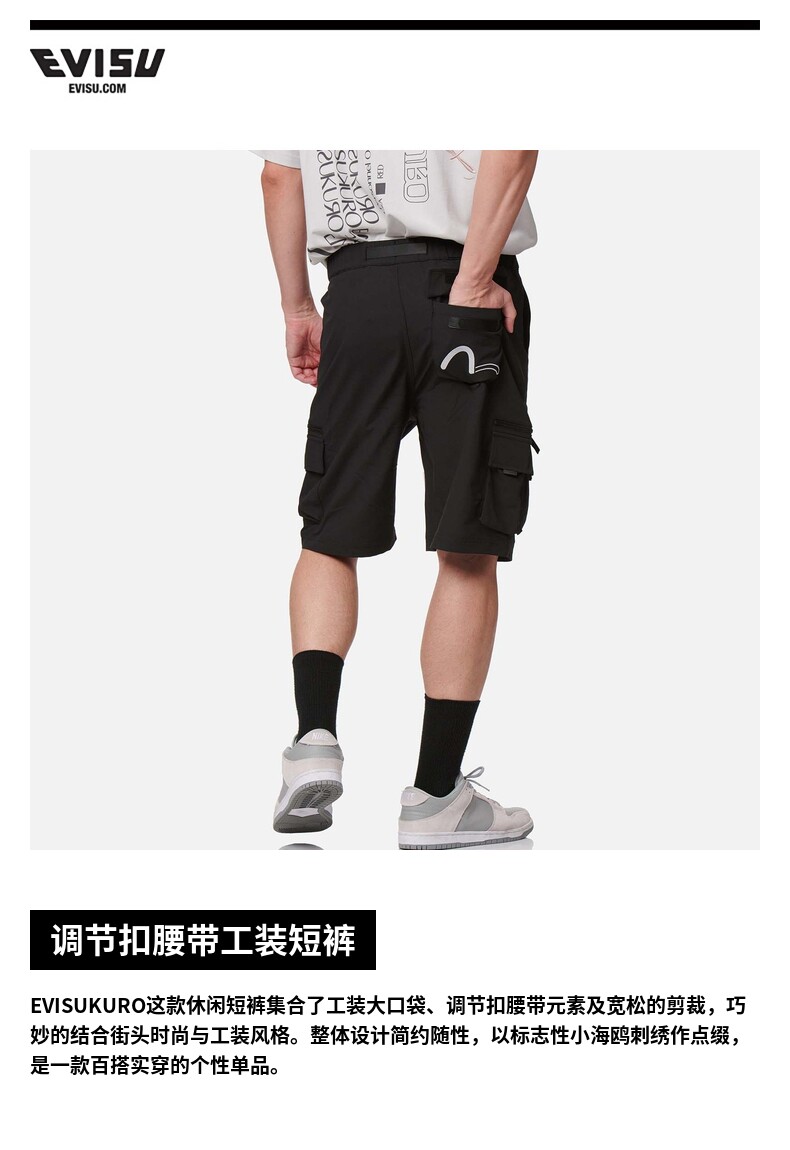 Мужские повседневные модные шорты-карго EVISUKURO с вышивкой чайки 2ESGNM2PH207XXPS 2ESGNM2PH207XXPS