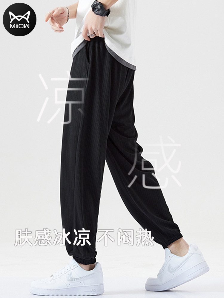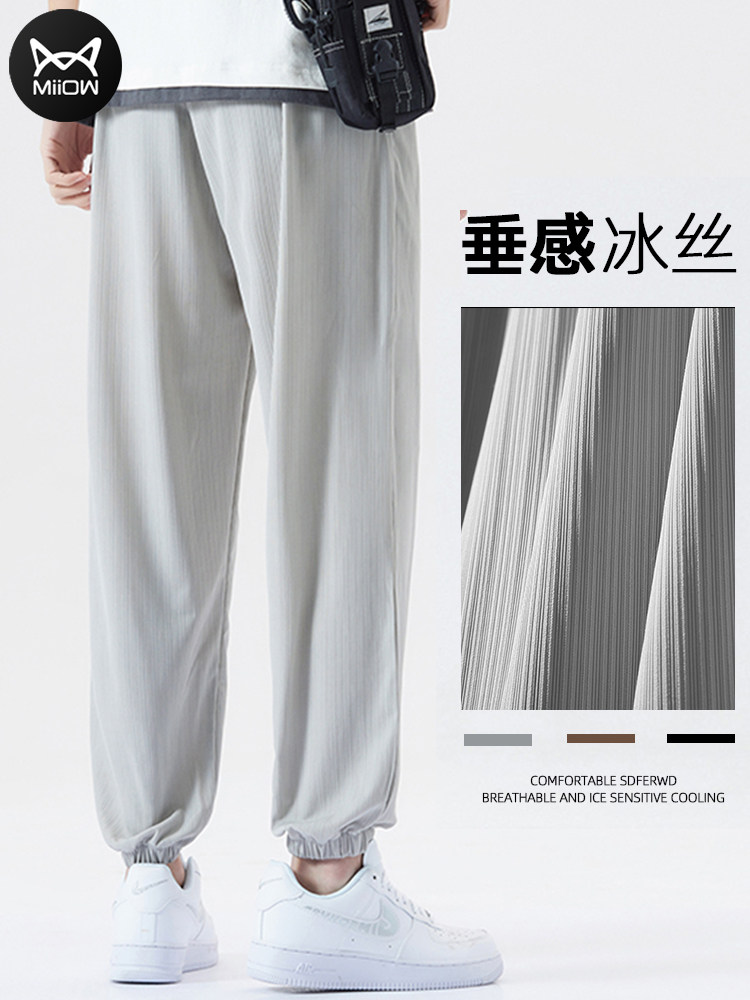 Летние тонкие штаны, шелковые мужские спортивные повседневные брюки, свободный крой