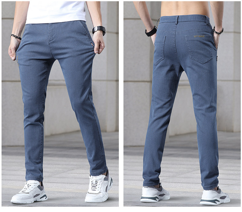 Летние шелковые штаны, эластичные тонкие джинсовые джинсы, в американском стиле, свободный прямой крой