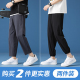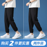 Мужские летние тонкие шелковые спортивные быстросохнущие штаны для отдыха, свободный прямой крой