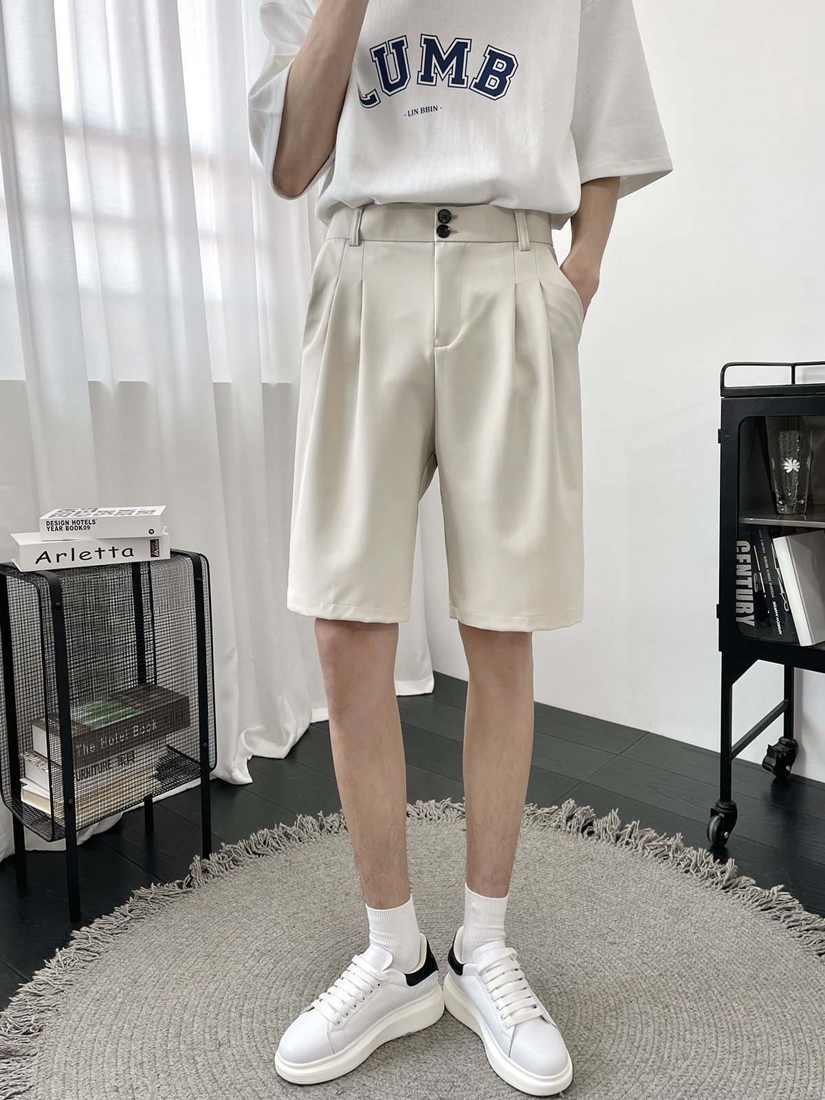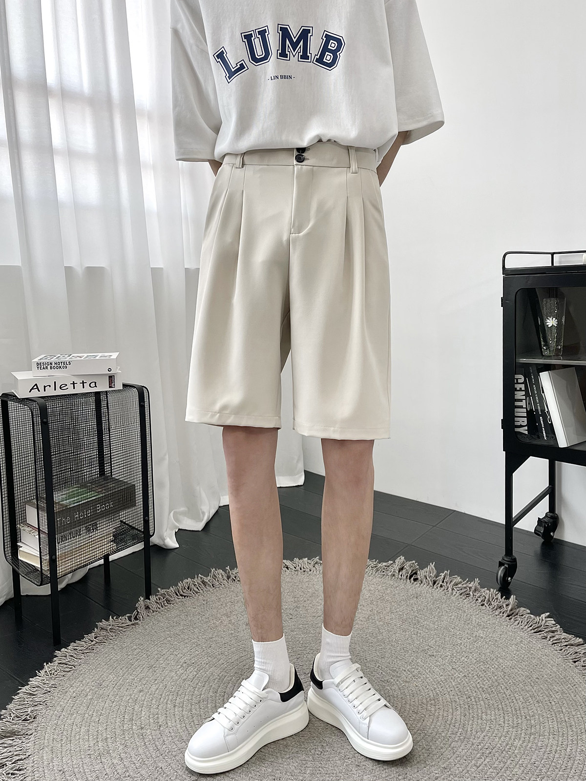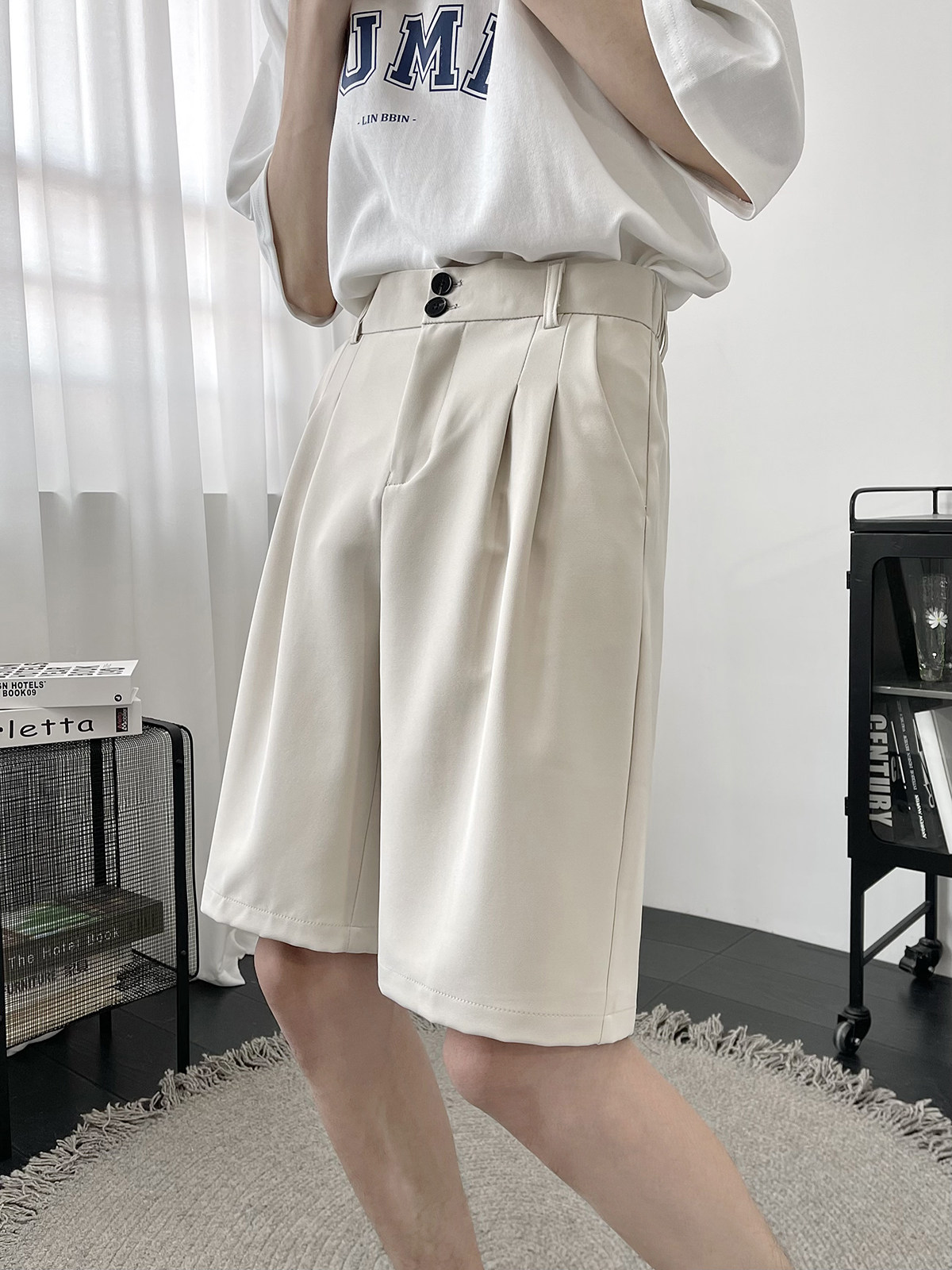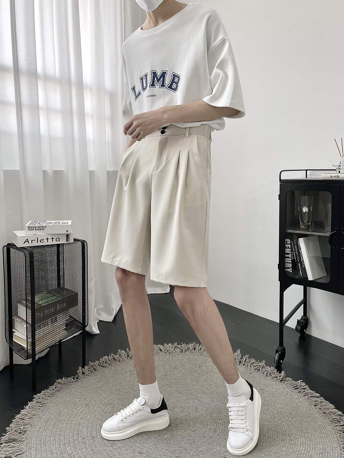 Костюм, шорты, летние тонкие трендовые штаны для отдыха, свободный прямой крой, в корейском стиле