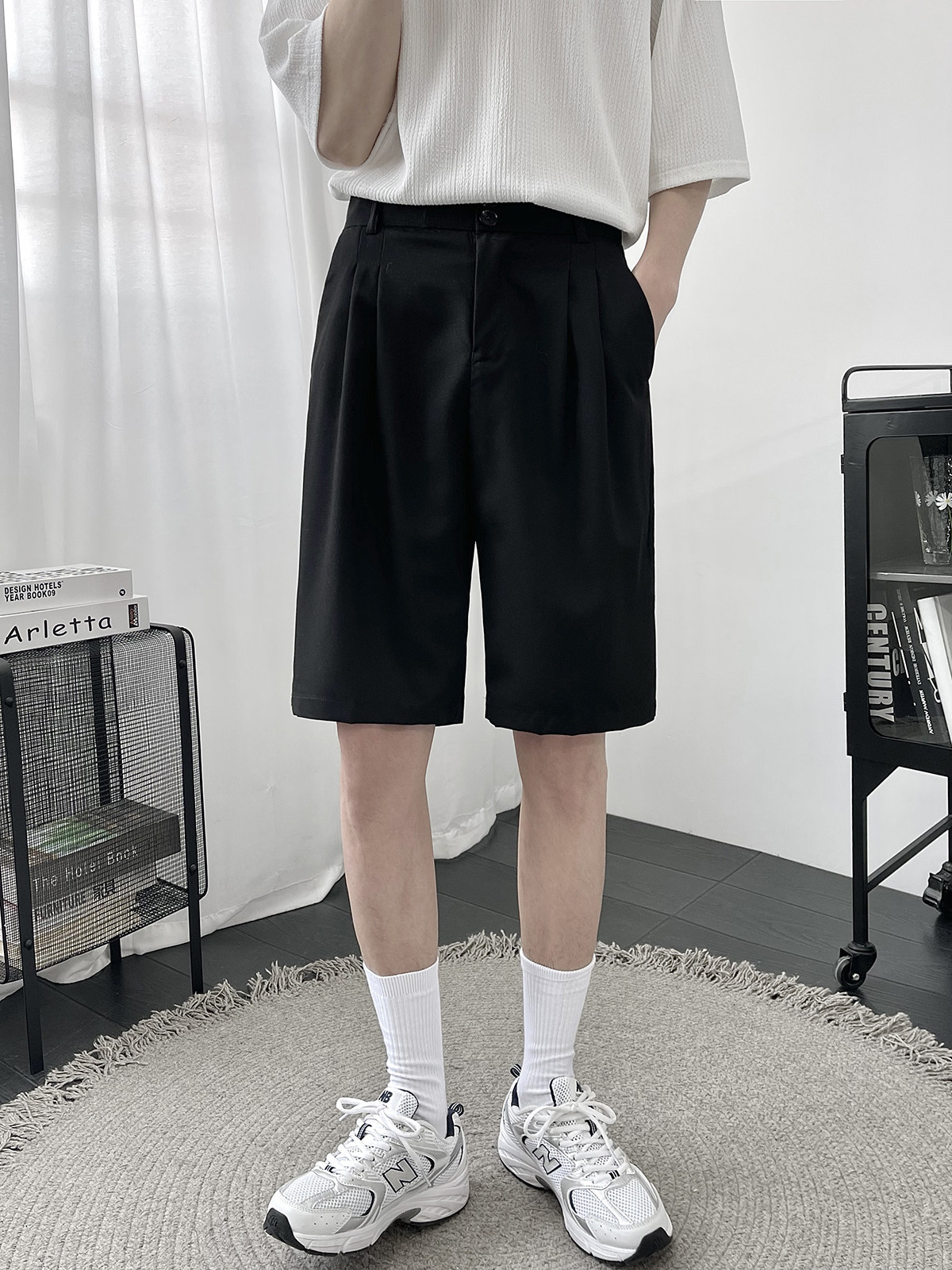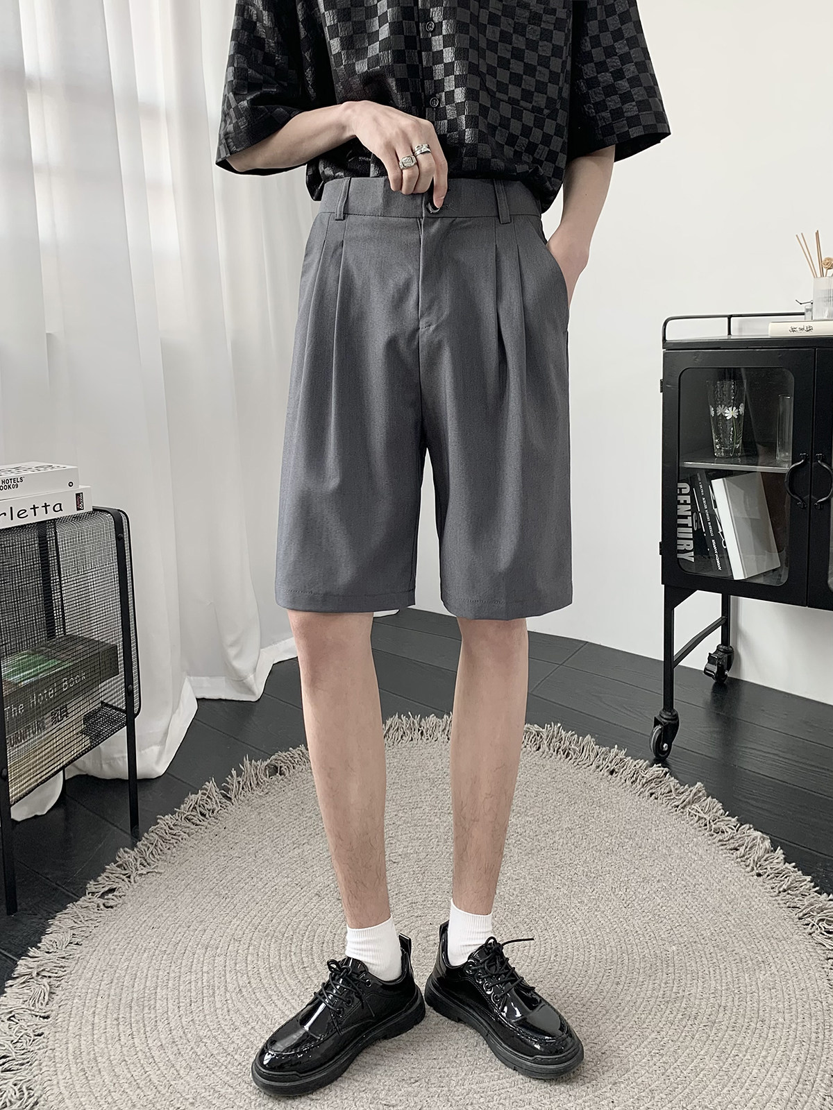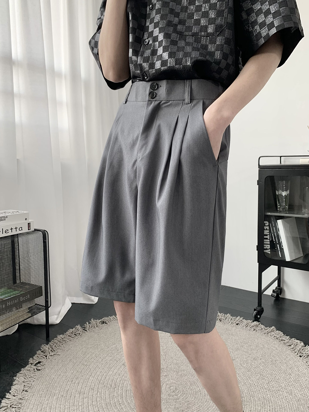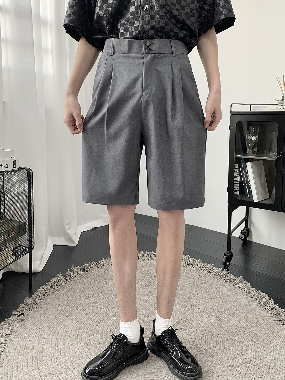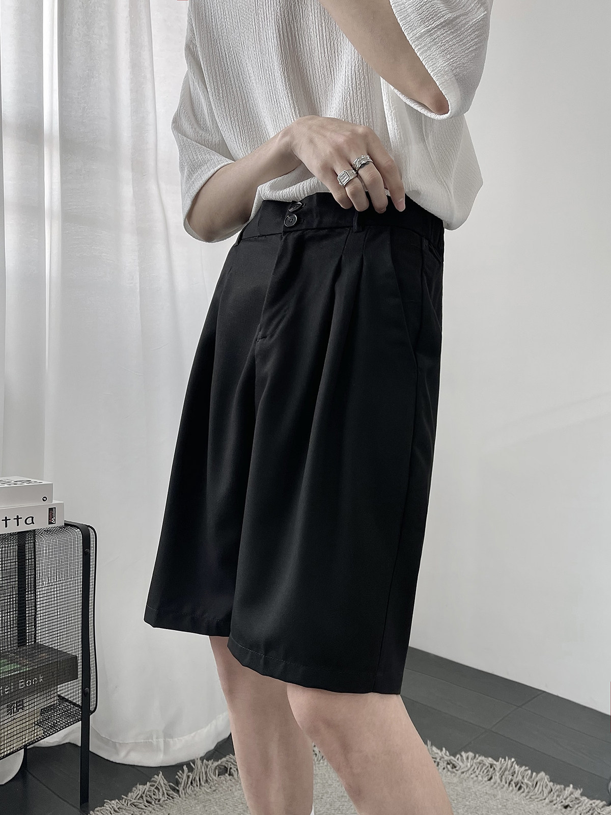 Костюм, шорты, летние тонкие трендовые штаны для отдыха, свободный прямой крой, в корейском стиле