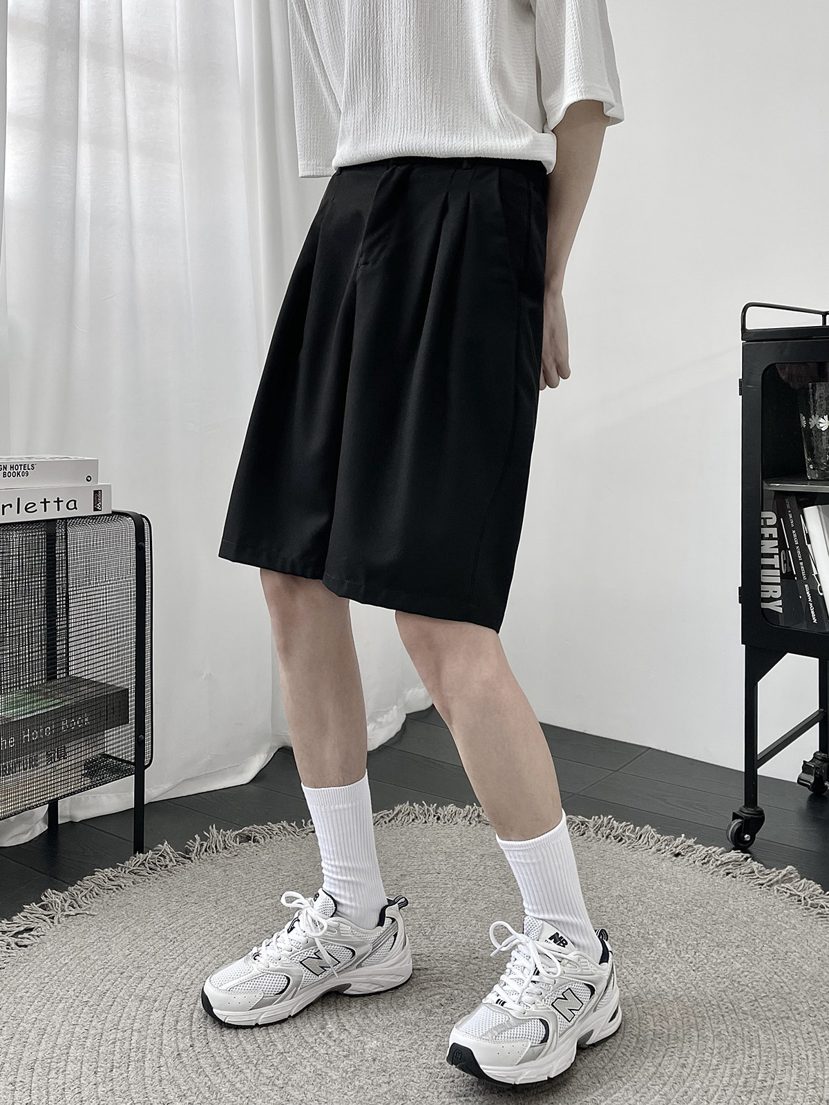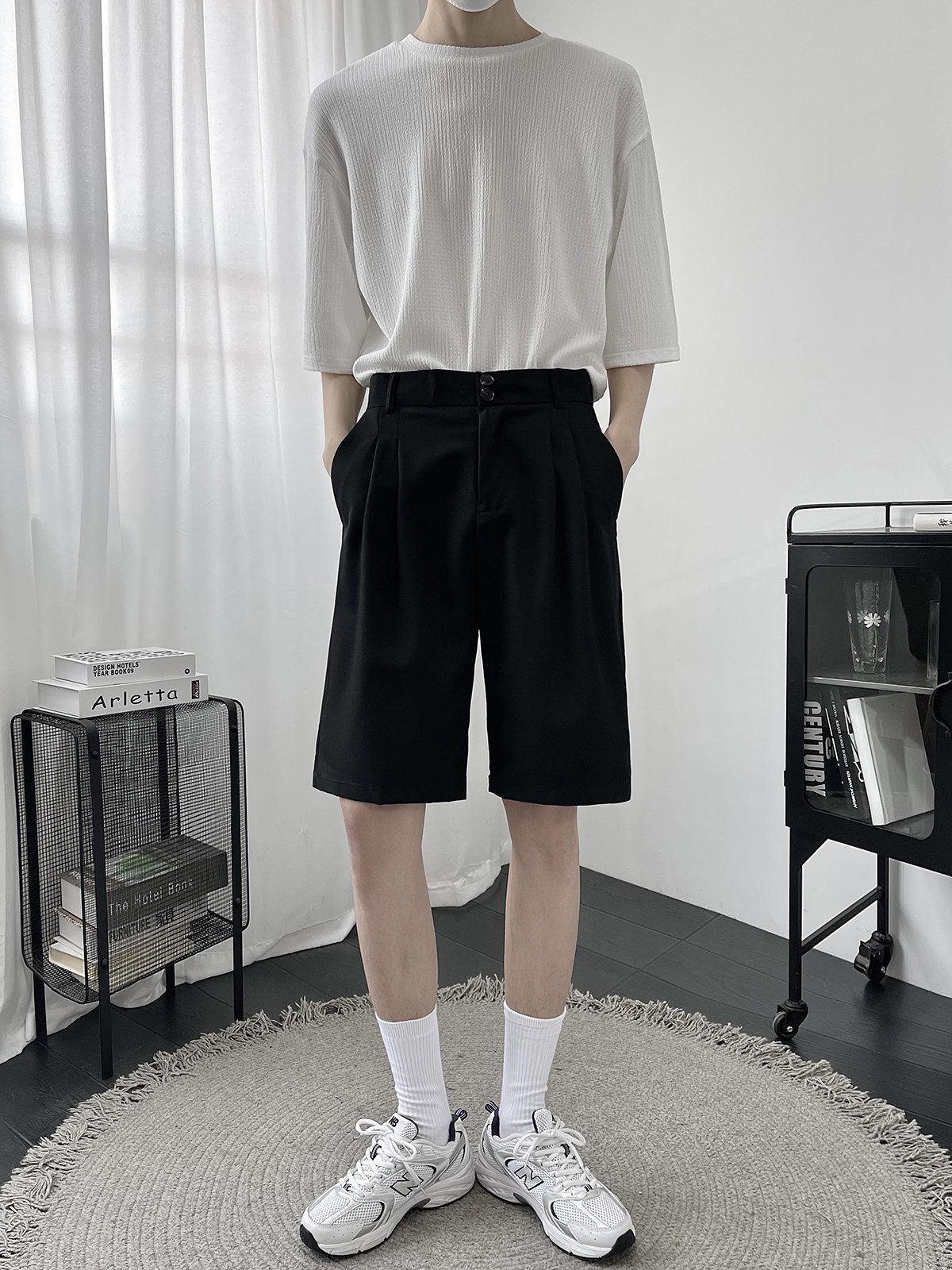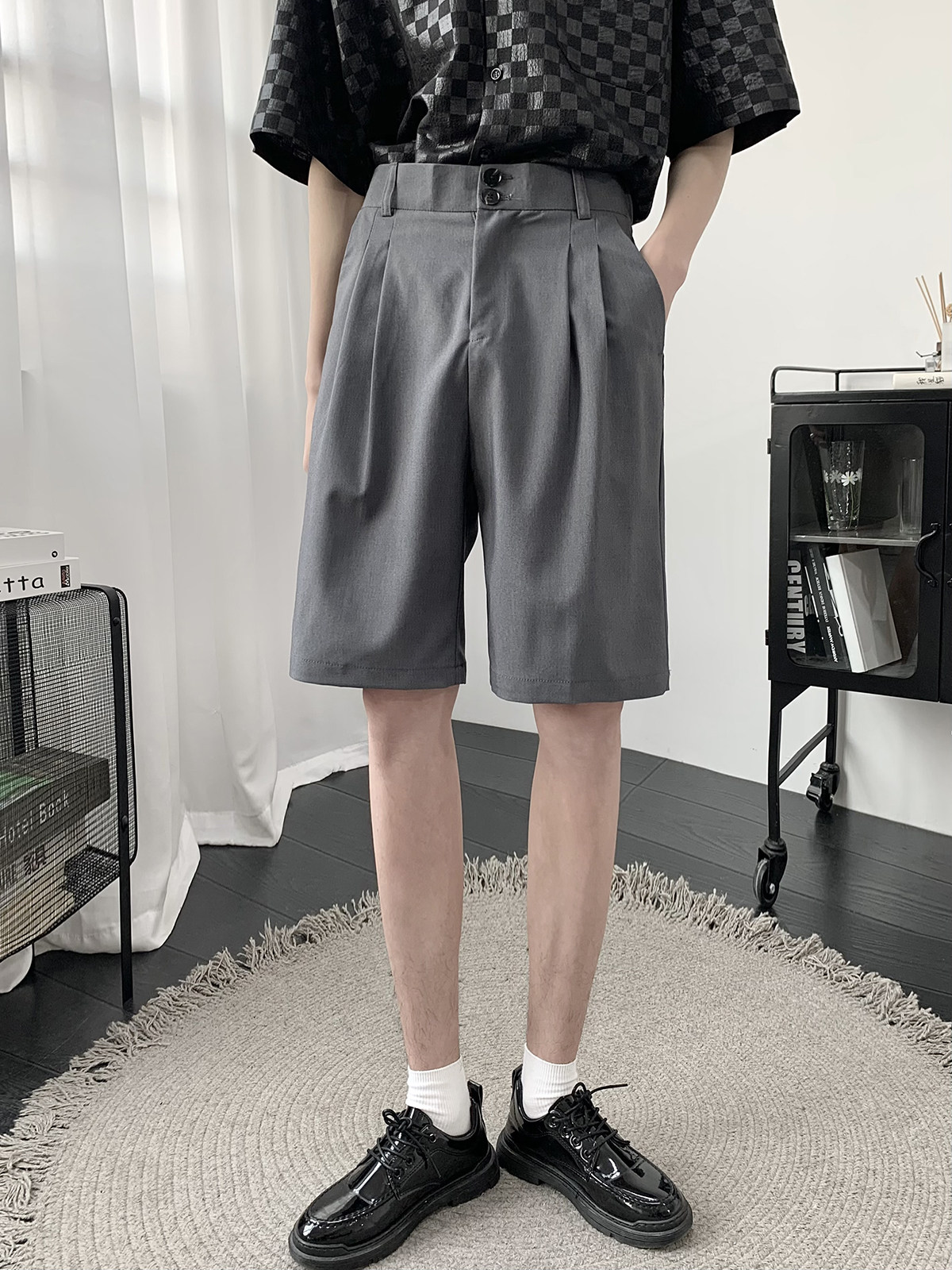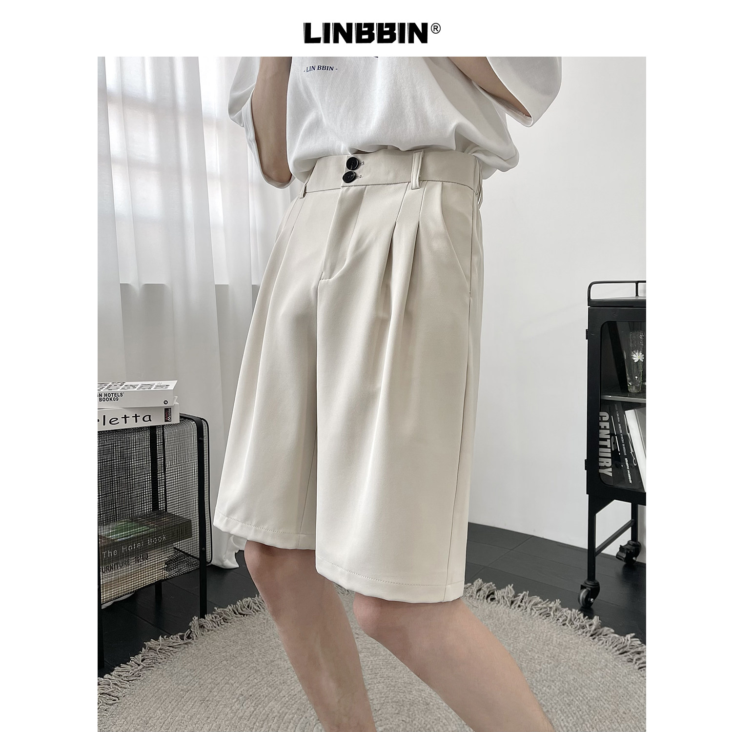 Костюм, шорты, летние тонкие трендовые штаны для отдыха, свободный прямой крой, в корейском стиле