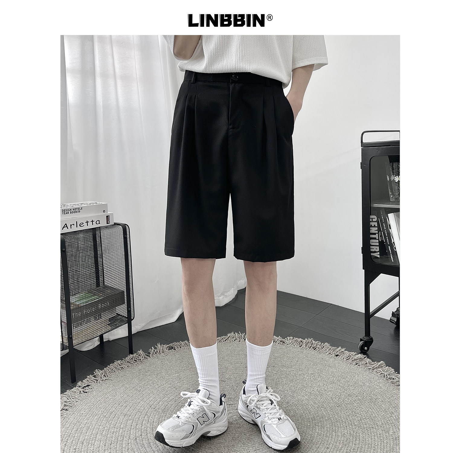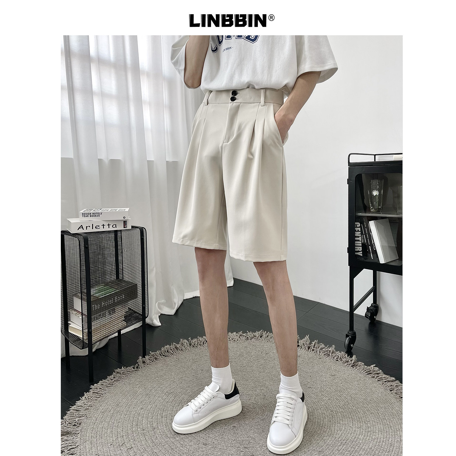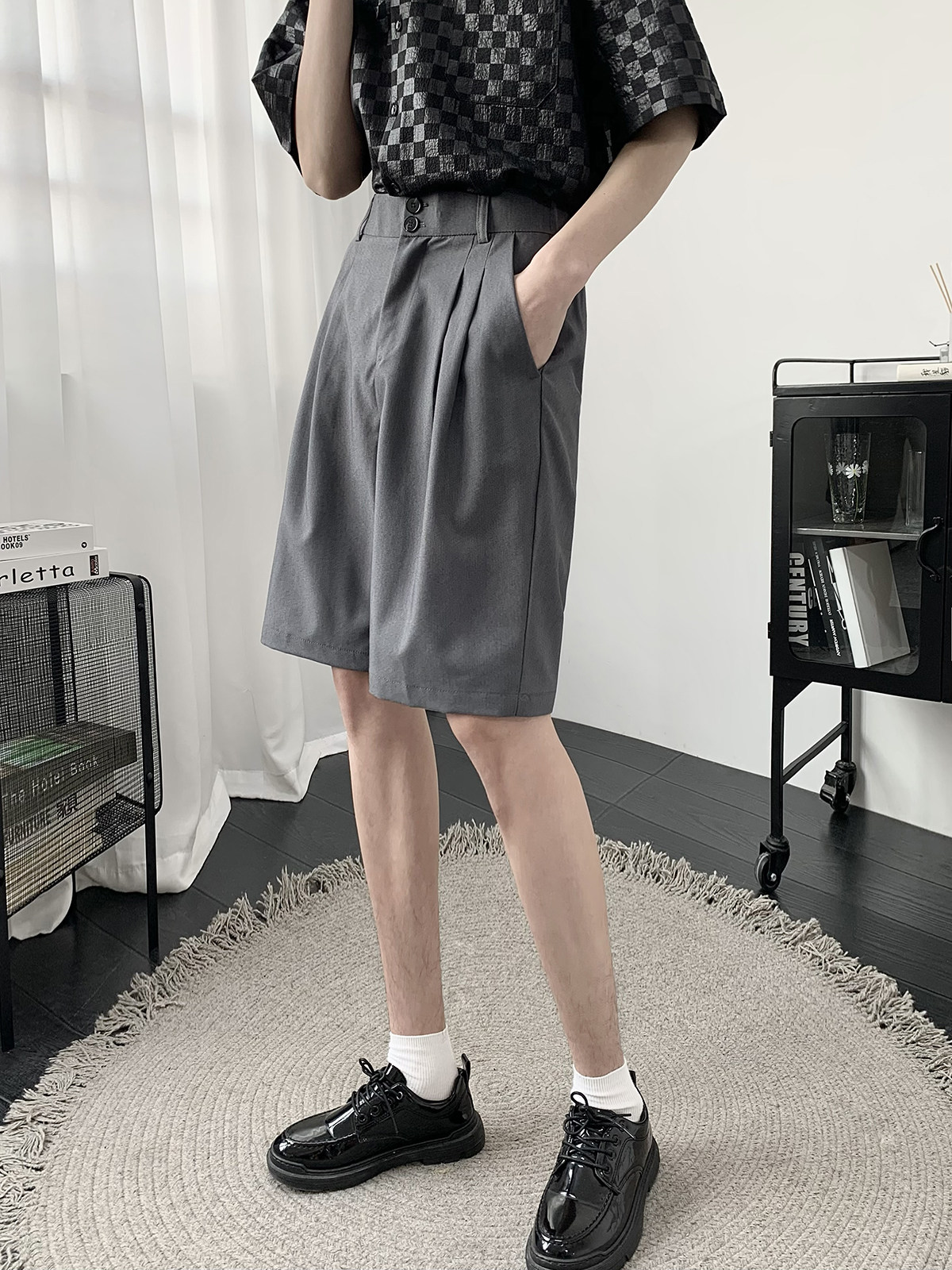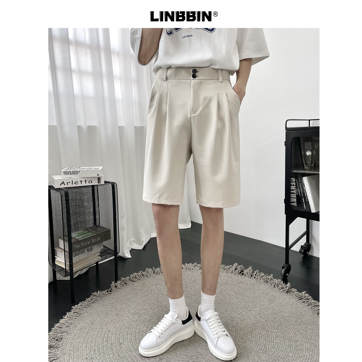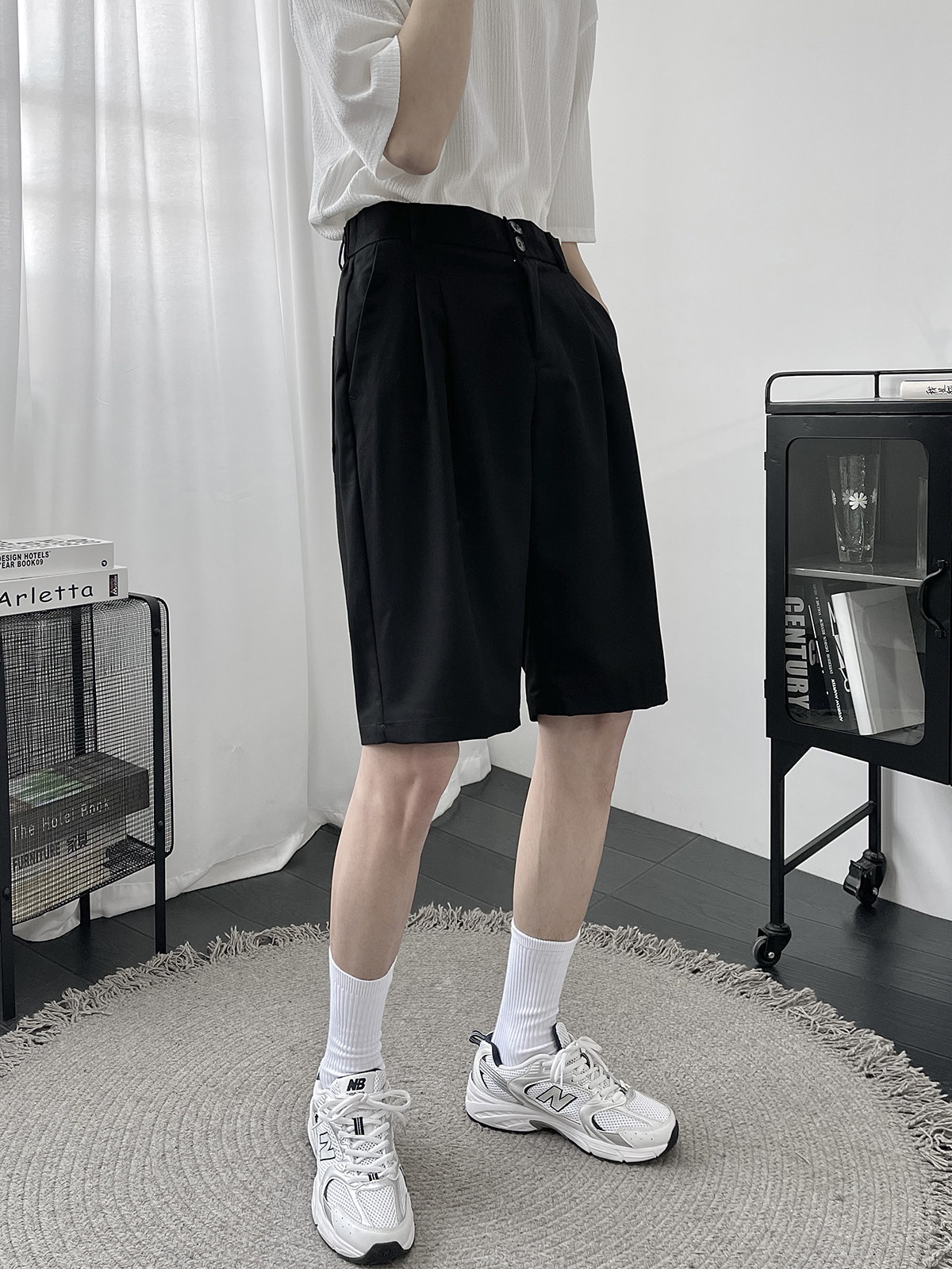 Костюм, шорты, летние тонкие трендовые штаны для отдыха, свободный прямой крой, в корейском стиле