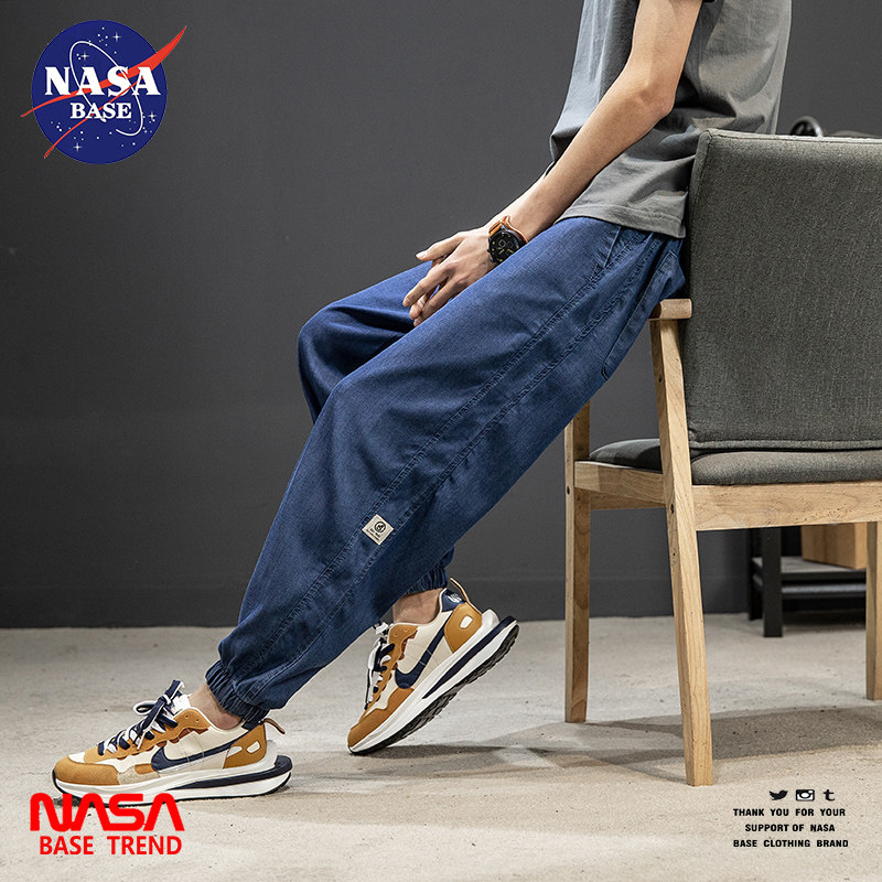 Летние тонкие японские джинсы, дышащие штаны для отдыха, на шнурках, свободный крой
