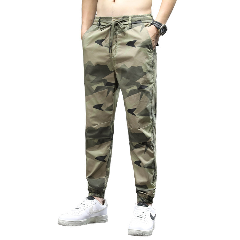 Камуфляжные шелковые тонкие дорожные штаны, быстросохнущие повседневные брюки для отдыха, оверсайз, свободный крой