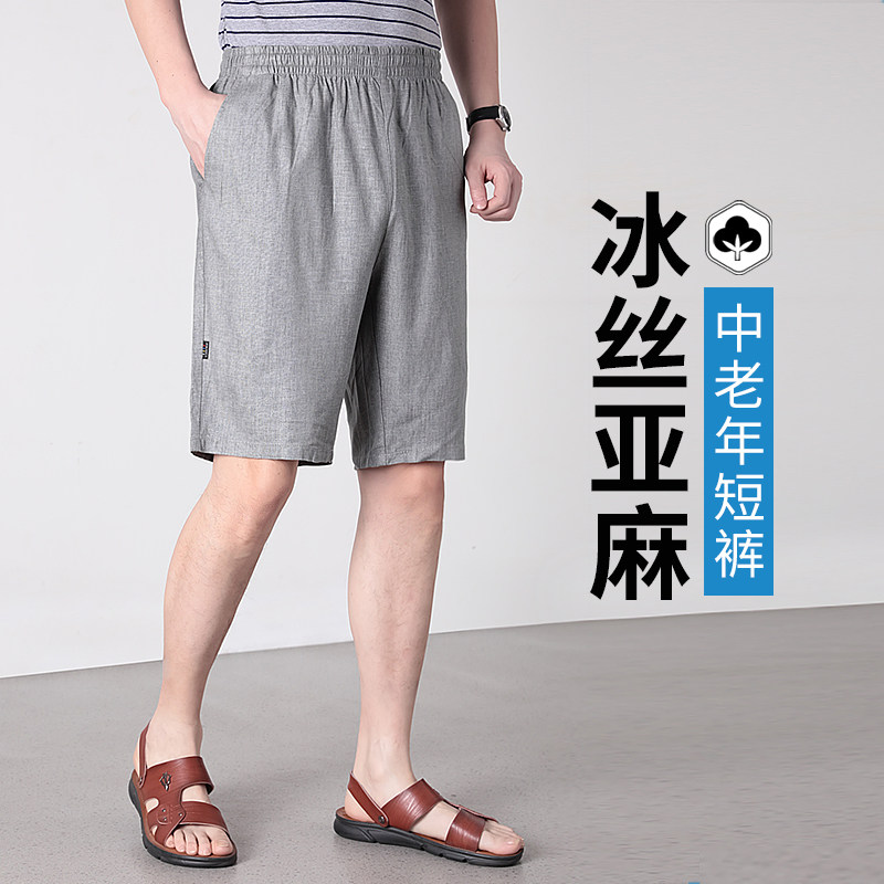 Шорты, мужские штаны, юбка в складку, комбинезон, для мужчины среднего возраста, свободный крой, из хлопка и льна