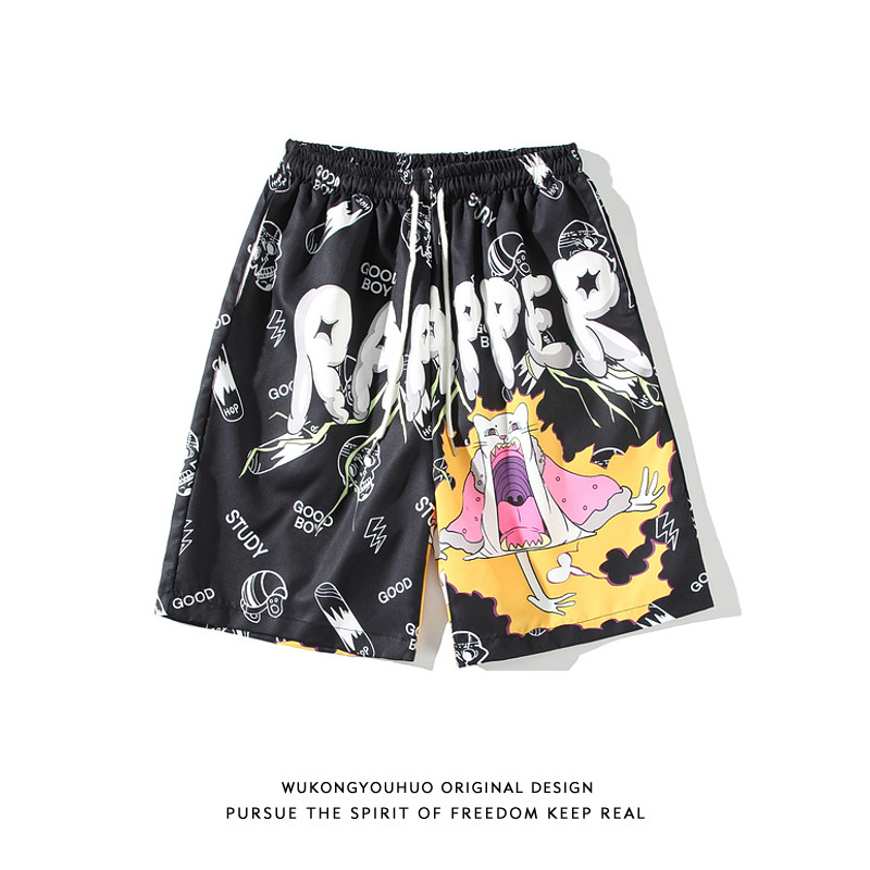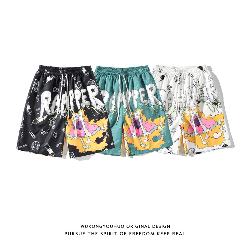 Летние мультяшные шорты в стиле хип-хоп для отдыха, быстросохнущие штаны, оверсайз