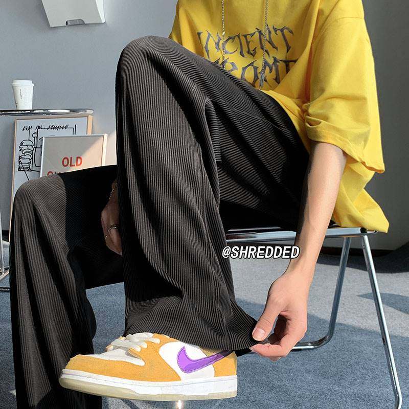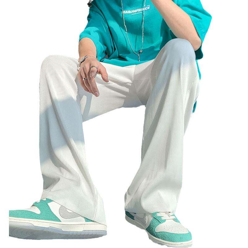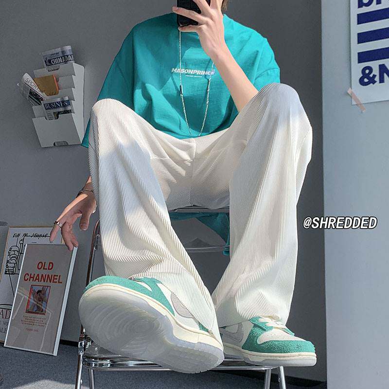 Мужские шелковые летние тонкие трендовые штаны, свободный прямой крой, в корейском стиле, оверсайз