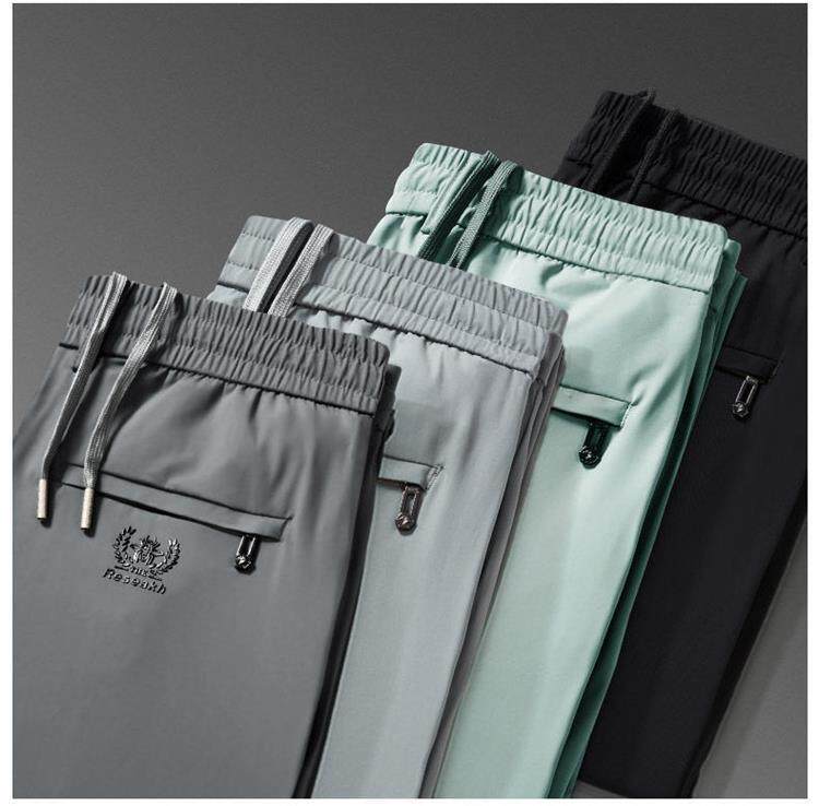 Шелковые мужские эластичные спортивные тонкие штаны, эластичная талия, свободный прямой крой