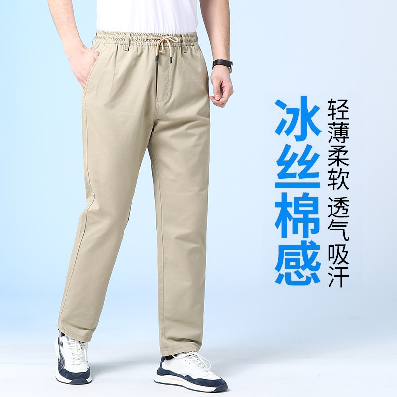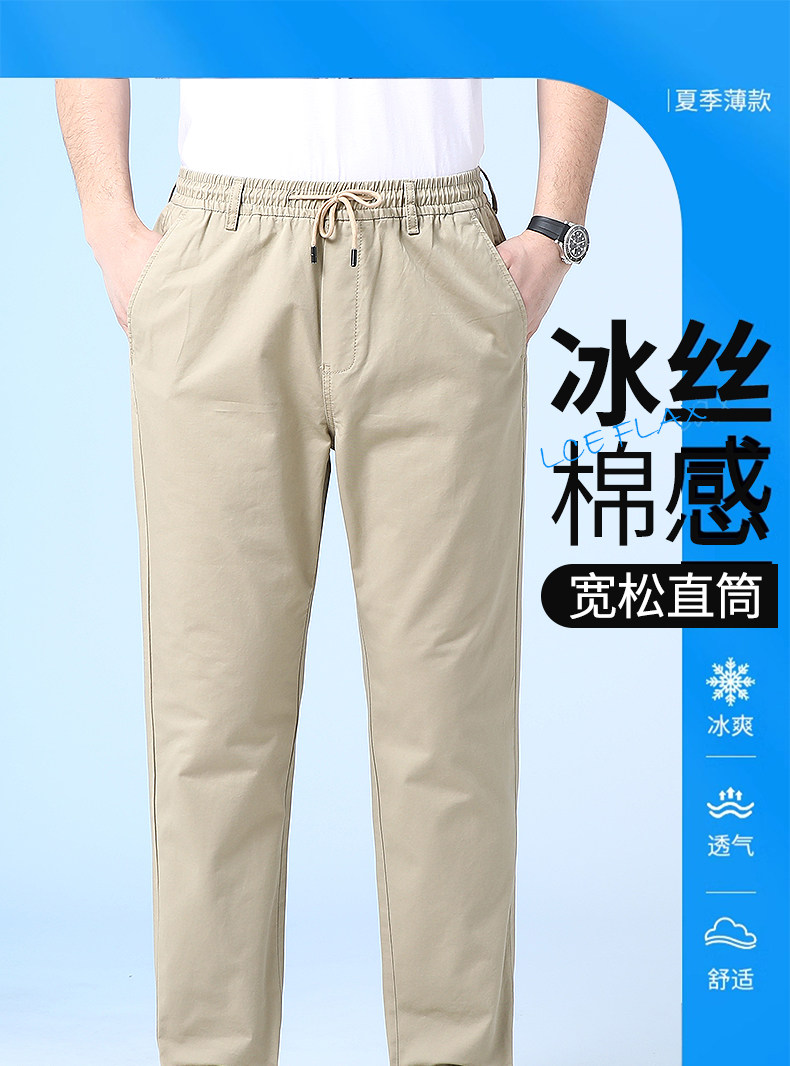 Хлопковые летние тонкие штаны, для среднего возраста, свободный прямой крой