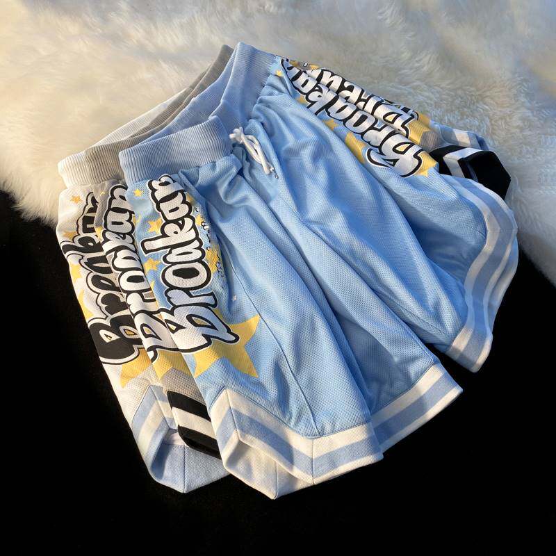 Баскетбольные шорты подходит для мужчин и женщин в стиле хип-хоп, летние тонкие шелковые спортивные штаны для тренировок, в американском стиле