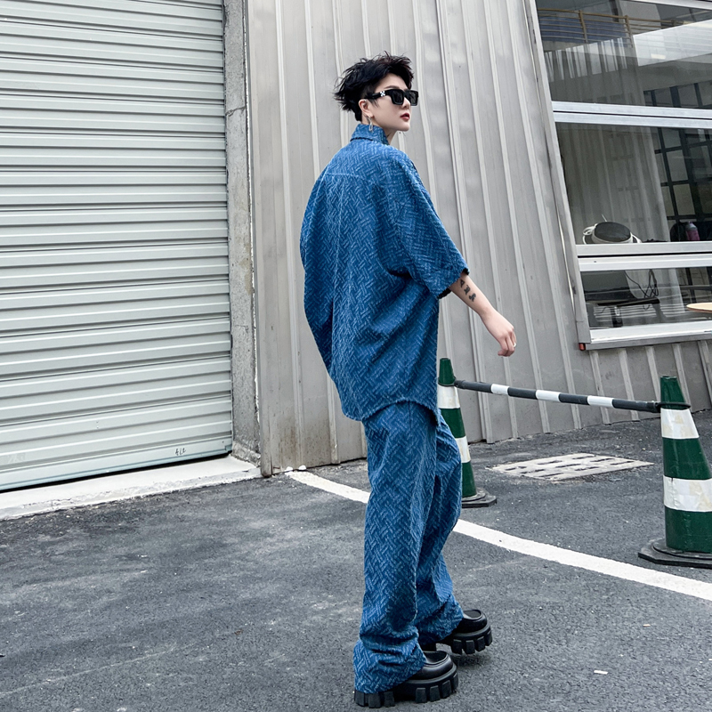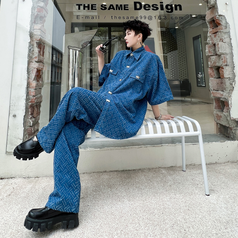 Джинсовая юбка, рубашка, комплект, ретро штаны, изысканный стиль