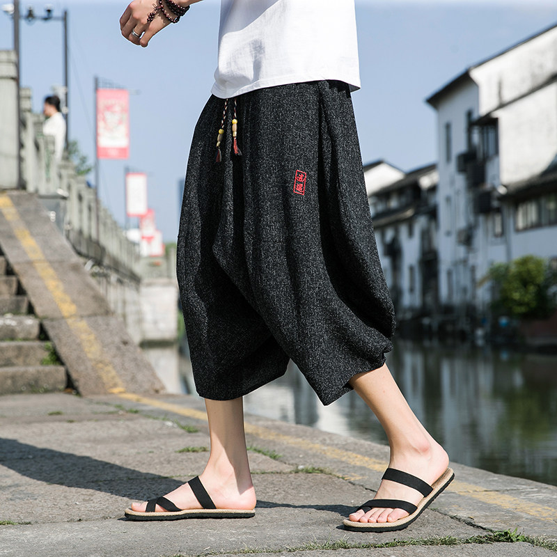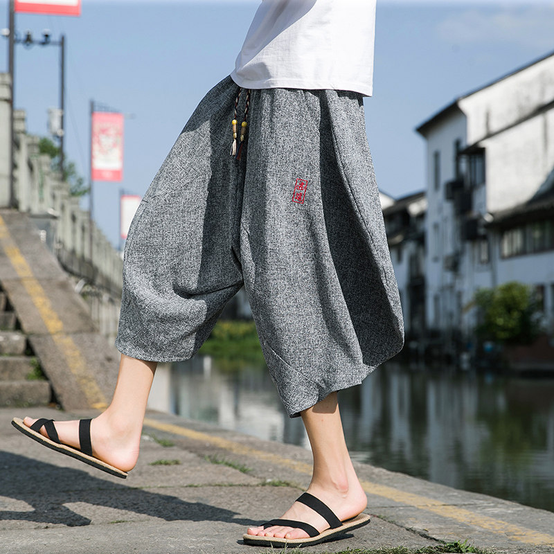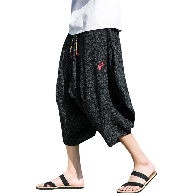 Китайские трендовые штаны, шорты, фонарь, китайский стиль, из хлопка и льна, большой размер, свободный крой